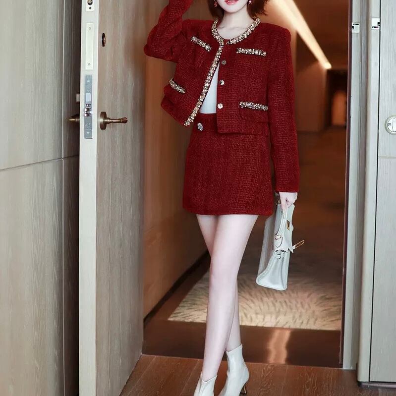 2セット ストーン付 セットアップ レディース スカート ジャケット 前開き テーラードジャケット タイトスカート ミニスカート ミニ ショート 膝丈 膝上 長袖 萌袖 タイト スリム 細身 ストレート 2way ビジュー かわいい 大人可愛い きれいめ 上品 おしゃれ かっこいい レトロ クール エレガント モダン 主役級 存在感 都会的 ラグジュアリー ワイルド セクシー 無地 春 秋 冬 ロングシーズン デート お出かけ パーティー イベント ホテル ショッピング 美脚 脚長 着回し インスタ映え