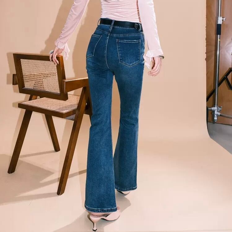 ストレートのシルエットが脚長効果を引き出し、ハイウエストでスタイルアップを叶えます。