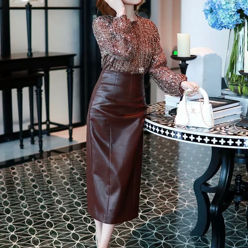 レディース トップス カットソー ブラウス シャツ 長袖 萌袖 スパンコール レザー スリム 細身 タイト チューリップ かわいい 大人可愛い きれいめ シンプル カジュアル 上品 おしゃれ レトロ ガーリー エレガント ラグジュアリー 都会的 クラシカル 無地 春 秋 冬 ロングシーズン デート お出かけ 女子会 休日 ホテル ガーデン お花見 コンパ 重ね着 お揃い 双子 韓国 オルチャン コーデ プチプラ 普段使い 着回し モテ 清楚 トレンド 流行 定番 ベーシックカラー 大人カラー ブラウン