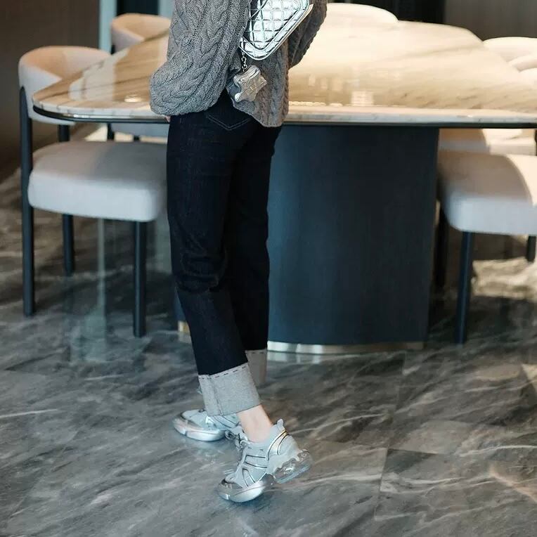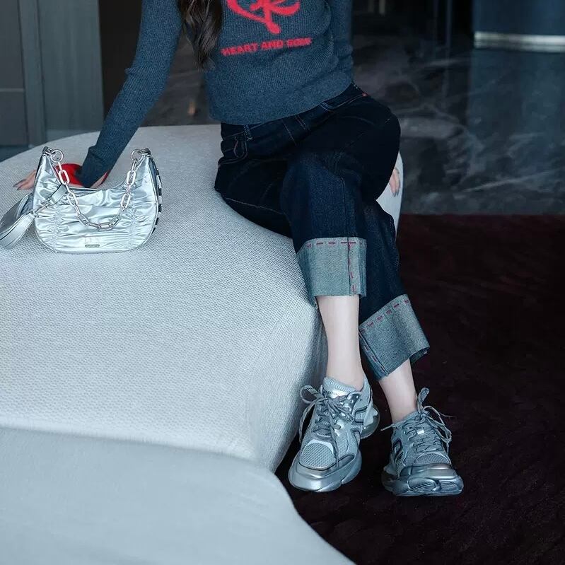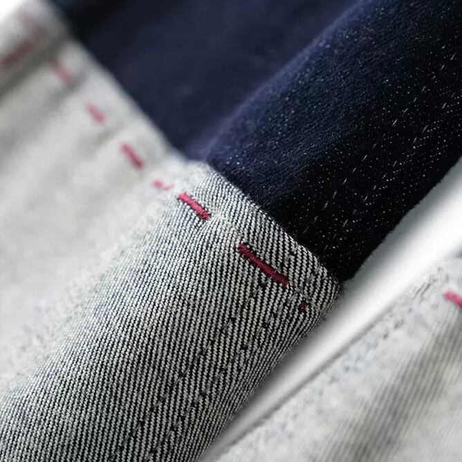 特徴的な赤ステッチがスタイリッシュさを際立たせ、タイトなシルエットが美脚効果を実現します。