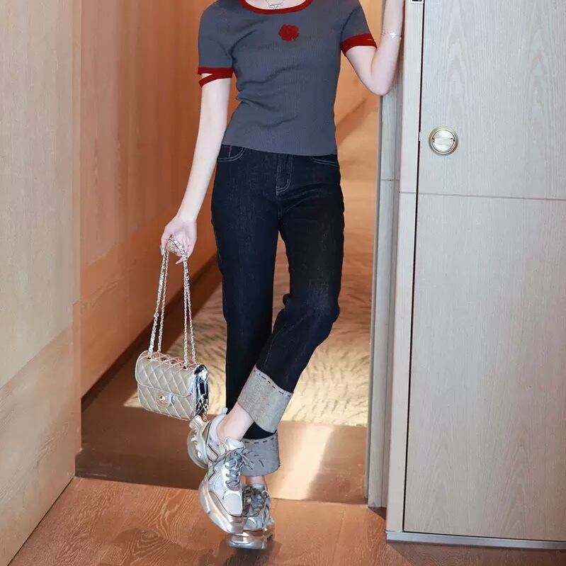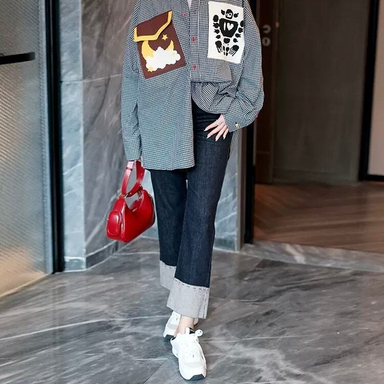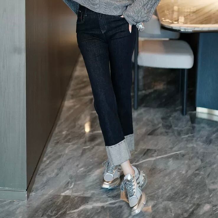 レディース パンツ ボトムス デニム Gパン ロングパンツ デニムパンツ 折り返し ステッチ 赤ステッチ タイト 細身 スリム ストレート ハイウエスト かわいい 大人可愛い シンプル カジュアル 上品 おしゃれ かっこいい レトロ 個性的 エレガント ヴィンテージ 都会的 タイムレス ワイルド 春 夏 秋 冬 オールシーズン ロングシーズン シーズンレス お出かけ 公園 女子会 休日 お揃い 韓国 美脚 脚長 普段使い 着回し インスタ映え S M L XL 2XL 3XL 大きいサイズ サイズ展開