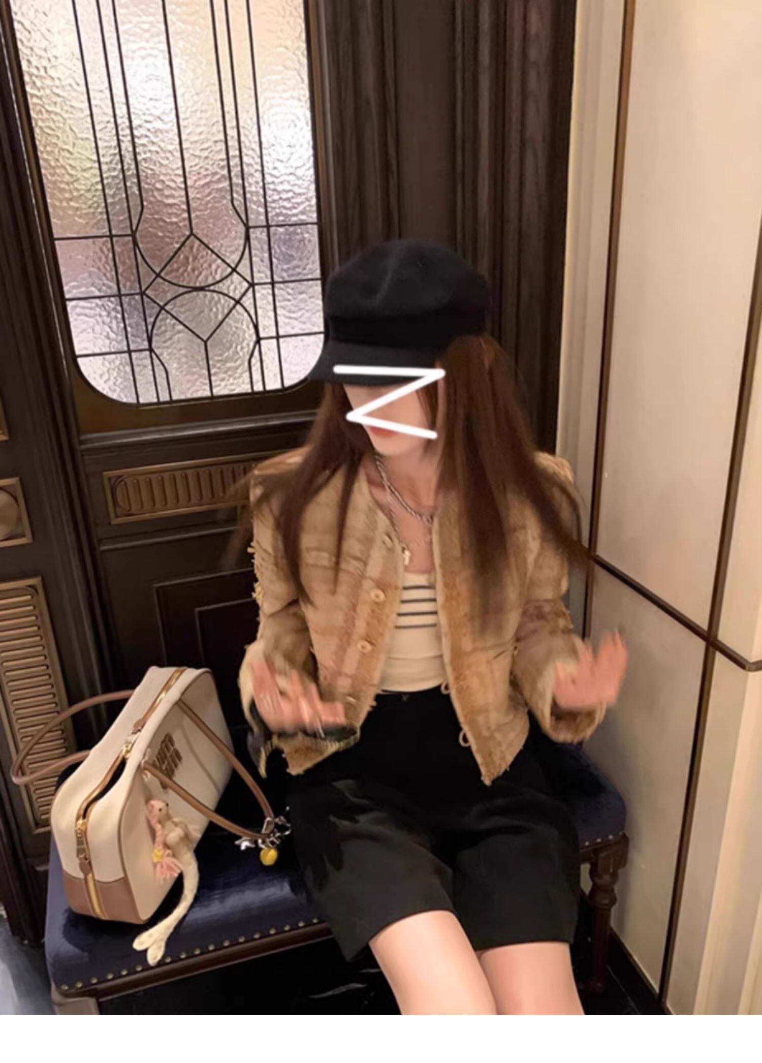 レディース ジャケット アウター 上着 羽織 前開き ノーカラージャケット ショート 長袖 襟なし ノーカラー オーバーサイズ フェミニン ポケット ツイード ボタン かわいい 大人可愛い きれいめ シンプル カジュアル 上品 おしゃれ レトロ こなれ感 エレガント モダン 抜け感 チェック 春 秋 冬 ロングシーズン 発表会 授業参観 オフィス 通勤 学生 学校 通学 デート お出かけ お泊まり 旅行 女子会 休日 ショッピング 普段使い 着回し S M L ゆったり 黒 ブラック 茶色 ブラウン