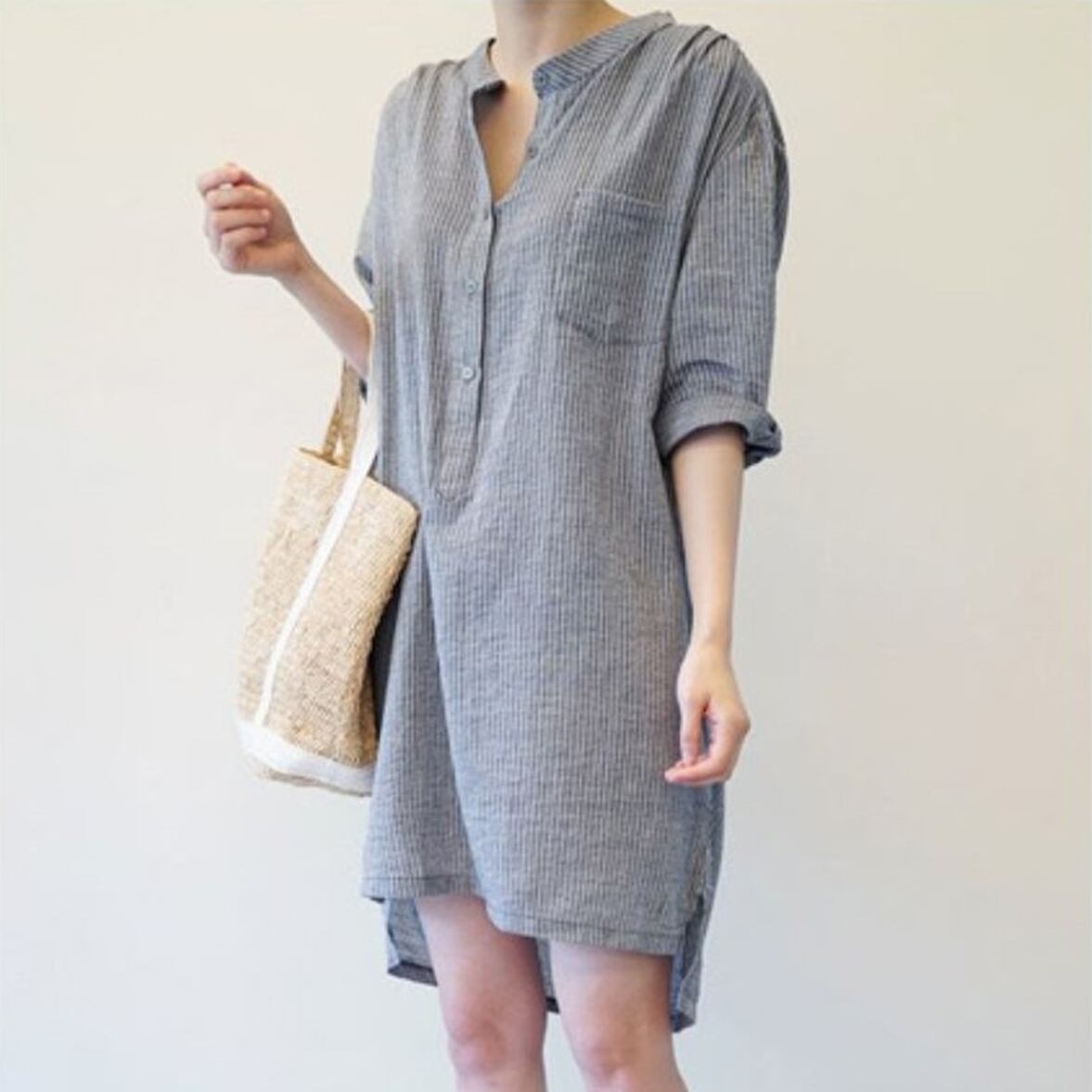 ストライプノーカラーワンピース ストライプシャツワンピース レディース ワンピース シャツワンピース ドレスワンピース ワンピドレス シャツワンピ シャツドレス ショート ミディアム 長袖 ノーカラー Aライン スマート スリム オーバーサイズ フレア かわいい 大人可愛い きれいめ シンプル カジュアル 上品 おしゃれ かっこいい こなれ感 ラフ ガーリー エレガント ベーシック ナチュラル 通勤 通学 デート お出かけ 休日 ショッピング 体型カバー 普段使い インスタ映え ゆったり フェミニン