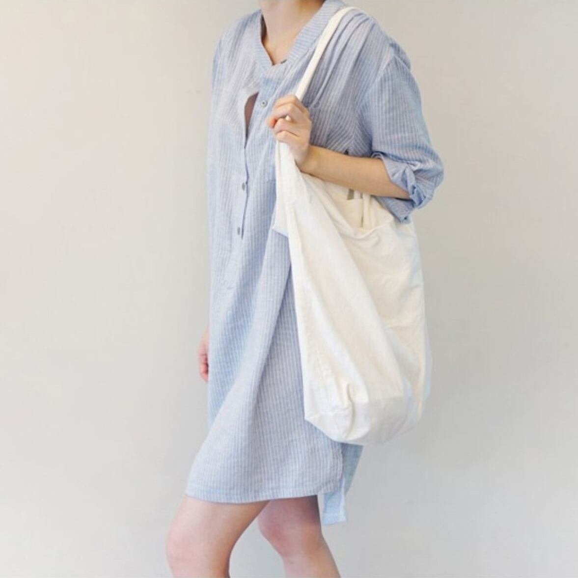 清涼感のあるストライプ柄でパンツと合わせても1枚できても可愛いノーカラーミディアムシャツワンピース。品よく落ち着いたルックスを演出し着くずして遊んでもシャープな印象を損なわず脱力したムードへ転換。コーディネートに悩みたくない日などに役立ちます