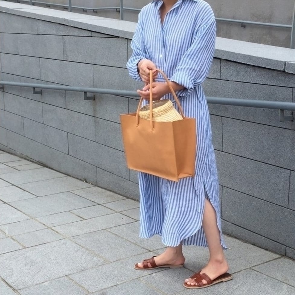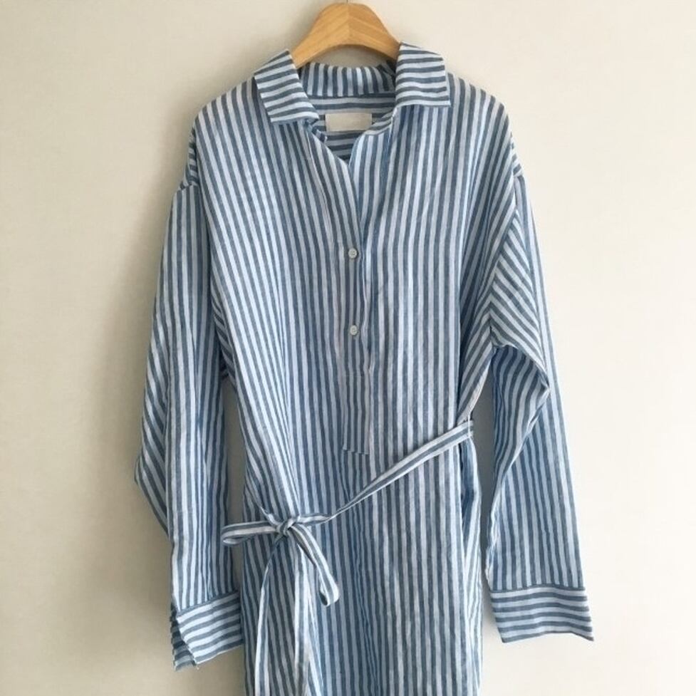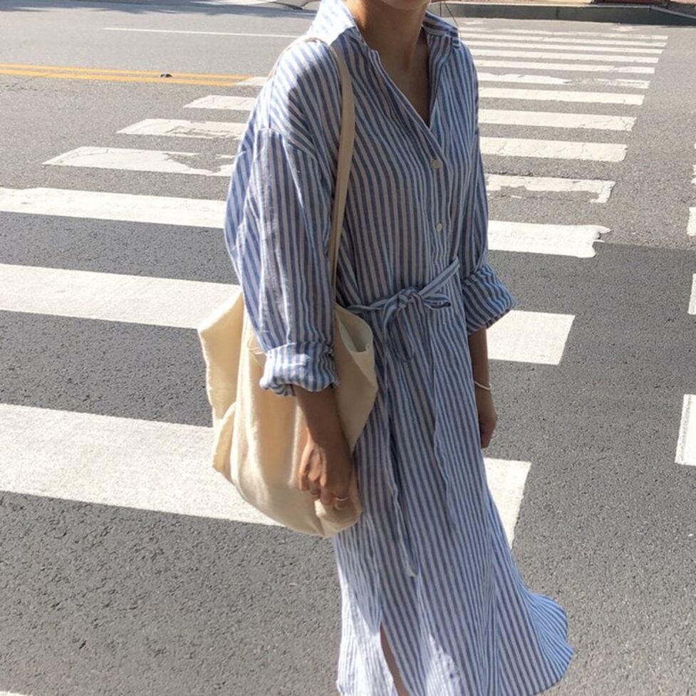 清涼感のあるコーデに仕上げてくれるストライプ柄ロングシャツワンピース。着こなしのブラッシュアップを叶えキレイを呼ぶ効果にアプローチ。スタイルアップにも貢献してレディな風格を保てる名品