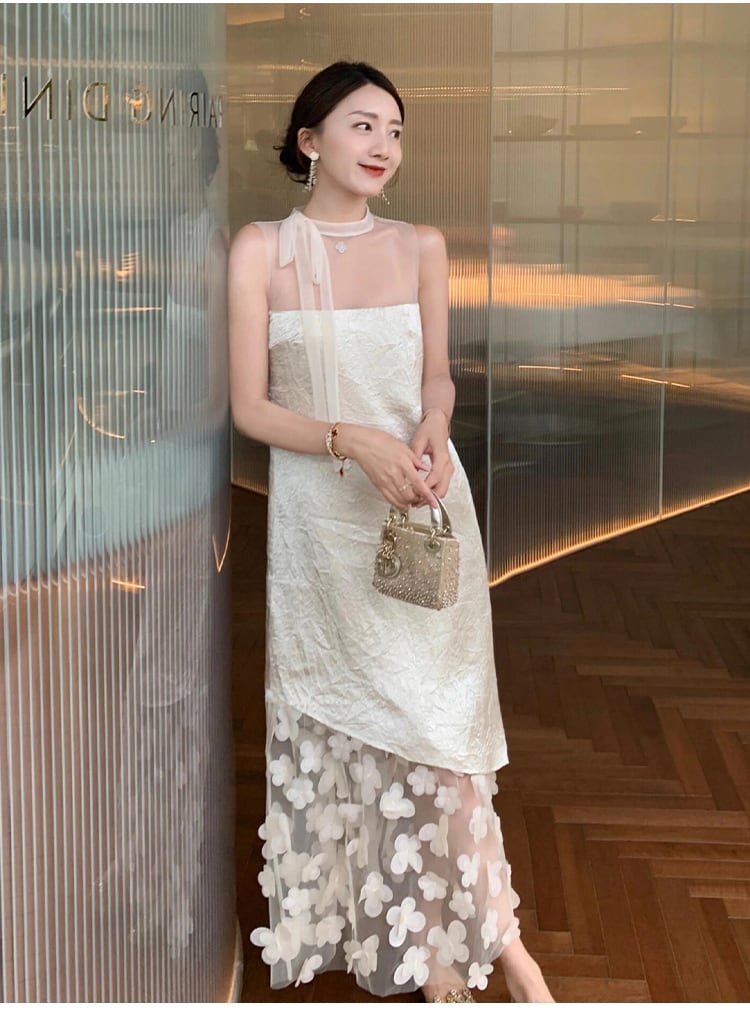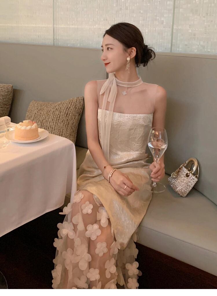 ドレス ワンピース パーティー 演奏会 発表会 ステージ 舞台 フォーマル 謝恩会 ラウンジ クラブ ロング 袖なし ノースリーブ ハイネック アシンメトリー 細身 Aライン リボン 切り替えデザイン ドッキング 透け感 シースルー 可愛い きれいめ シンプル 大人可愛い 上品 おしゃれ キュート ガーリー エレガント 主役級 存在感 抜け感 清楚 華やか 花柄 フラワー パーティー イベント リゾート 旅行 ホテル ガーデン レストラン 高原 高見え 格上げ 女子会 春 夏 S M L スリム ベージュ