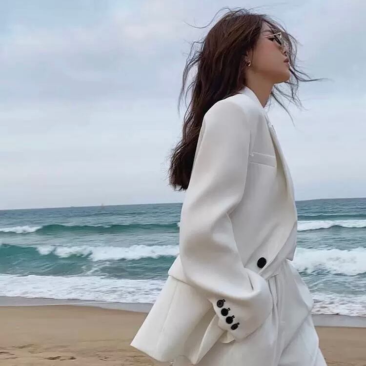ジャケットとパンツの上下セットで大きめシルエットが魅力的。