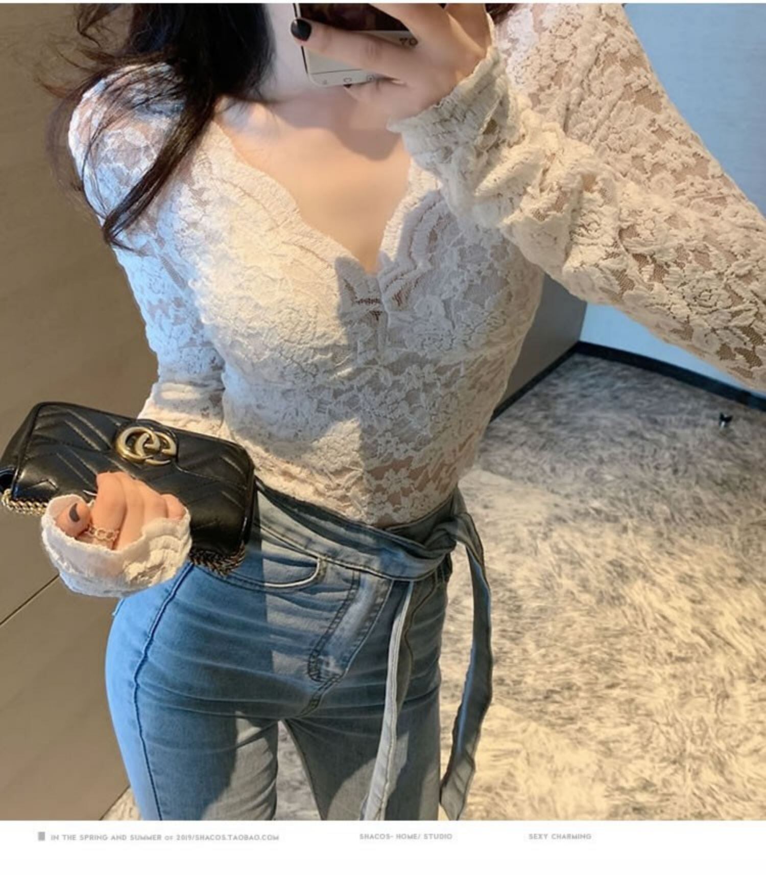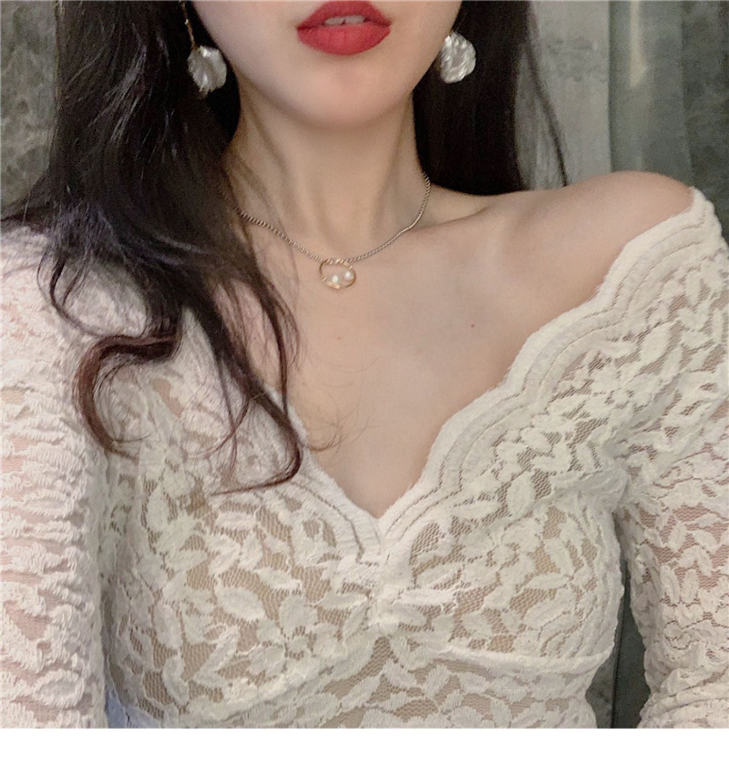 レディース トップス シャツ ブラウス プルオーバー ショート 長袖 萌袖 Vネック 襟なし ノーカラー スリム 細身 フェミニン レース 透け感 かわいい 大人可愛い きれいめ シンプル カジュアル 上品 おしゃれ こなれ感 ガーリー エレガント 存在感 抜け感 ラブリー キュート ラグジュアリー セクシー 花柄 フラワー 春 秋 デート お出かけ お泊まり 女子会 休日 高原 ガーデン ショッピング 合コン コンパ フェス 普段使い 着回し モテ 清楚 S M L XL 白 ホワイト 黒 ブラック