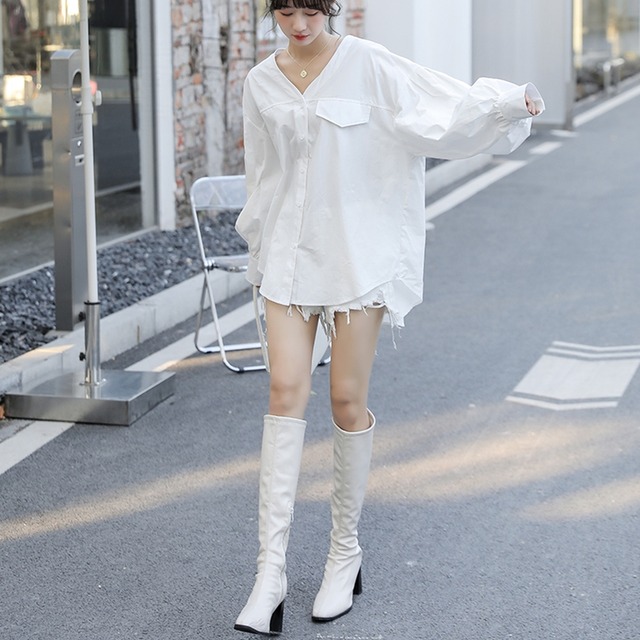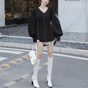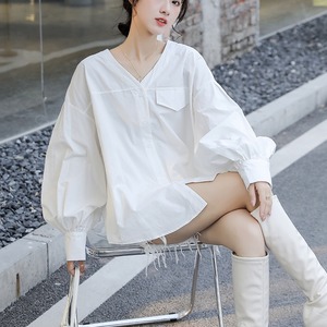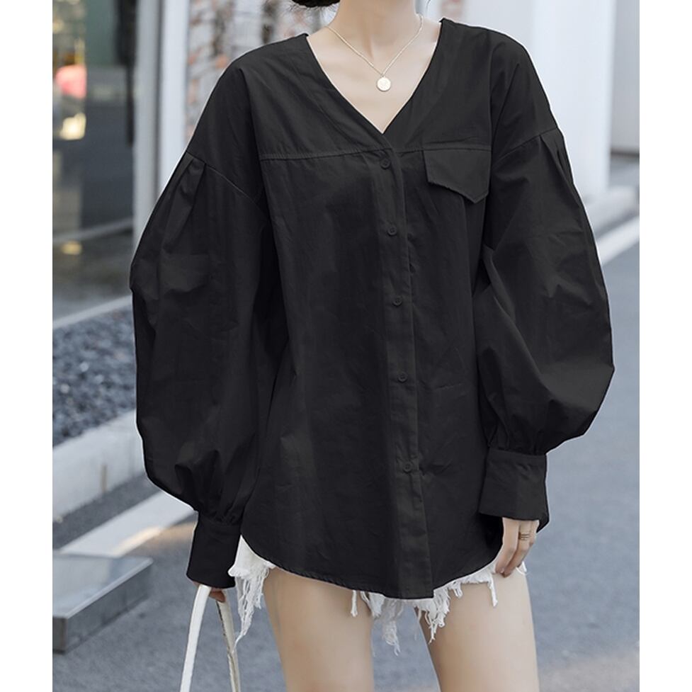 Vネックボリュームシャツ ボリューム袖ビッグシャツ レディース トップス シャツ ワンピース ドロップショルダー ビッグシャツ オーバーシャツ フィッシュテール 無地 長袖 バルーンスリーブ ボリュームスリーブ Vネック ノーカラー オーバーサイズ シフォン かわいい 大人可愛い きれいめ シンプル カジュアル 上品 おしゃれ こなれ感 ガーリー クール エレガント デート お出かけ 休日 ショッピング 体型カバー トレンド インスタ映え ゆったり フェミニン