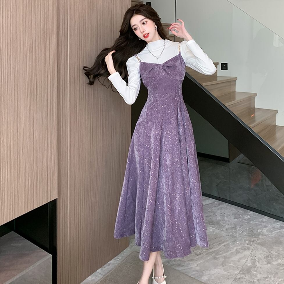 ドレープがきれいでゴージャスな雰囲気を引き立てるロングワンピース。飾らないのに目を引く存在感とエレガントな質感で品のよさもキープ。軽やかさやフェミニンなムードはそのままに最速でキレイを含んだやさしい主張もあり