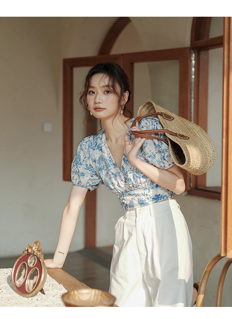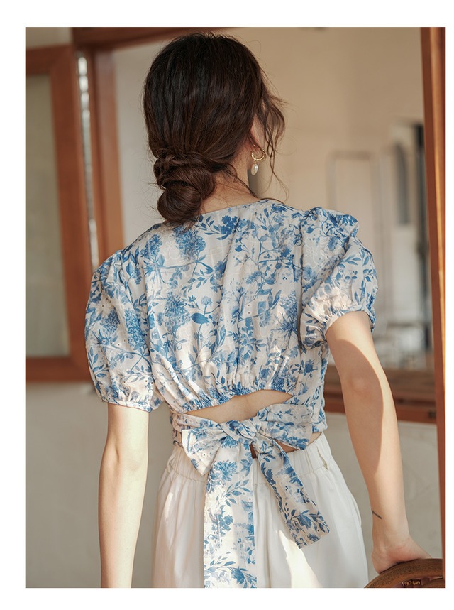 レディース トップス シャツ ブラウス ショート クロップド へそ出し 半袖 パフスリーブ Vネック カシュクール バックウエスト開き スリム 細身 切り替え フェミニン 刺繍 バックリボン かわいい 大人可愛い きれいめ シンプル カジュアル 上品 おしゃれ こなれ感 ガーリー エレガント 存在感 抜け感 ラブリー キュート セクシー 花柄 フラワー 春 夏 デート お出かけ お泊まり リゾート 旅行 公園 女子会 休日 バカンス ショッピング カフェ 普段使い 着回し モテ 清楚 S M L ブルー