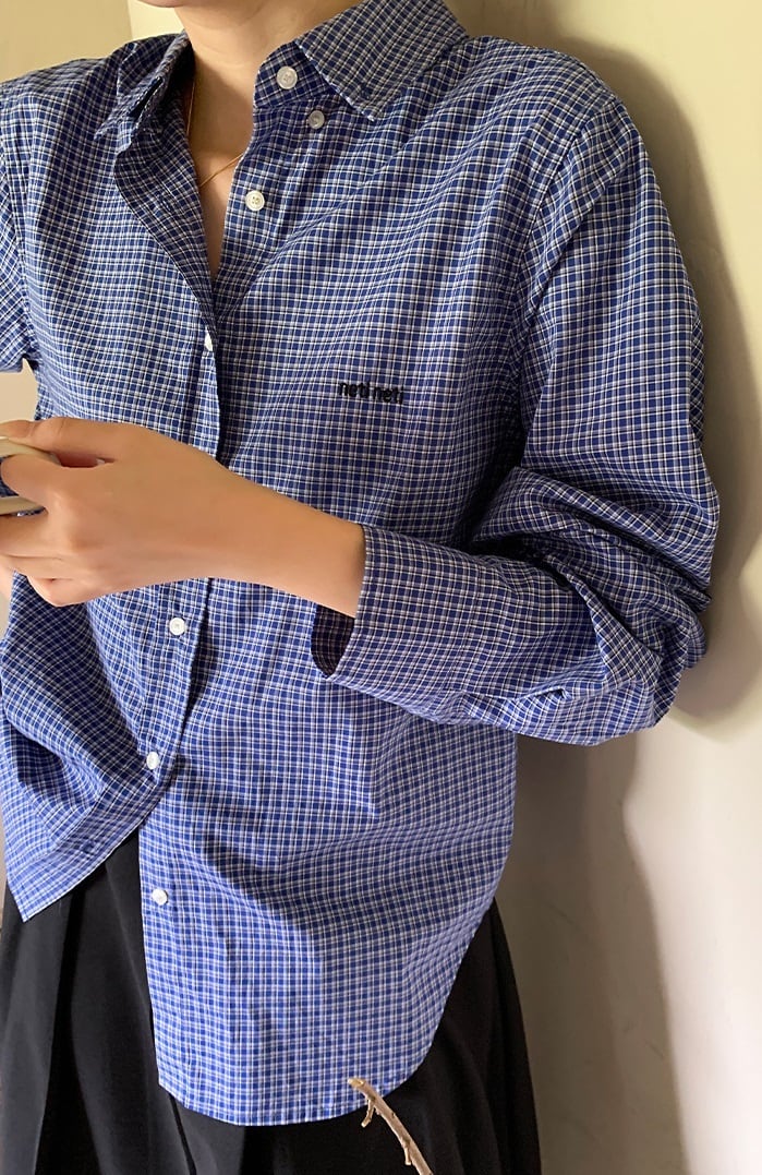 チェック柄 長袖 シャツ レディース トップス 羽織 ミディアム 長袖 襟付き 角襟 ポロカラー 前開き ボタン かわいい 大人可愛い シンプル カジュアル おしゃれ かっこいい こなれ感 マニッシュ 存在感 チェック 格子柄 ロゴ 春 秋 冬 ママ 通勤 学生 学校 通学 デート お出かけ 旅行 公園 女子会 休日 ショッピング カフェ 重ね着 普段使い 着回し レイヤード ゆったり フリーサイズ 水色 ライトブルー ダークブルー