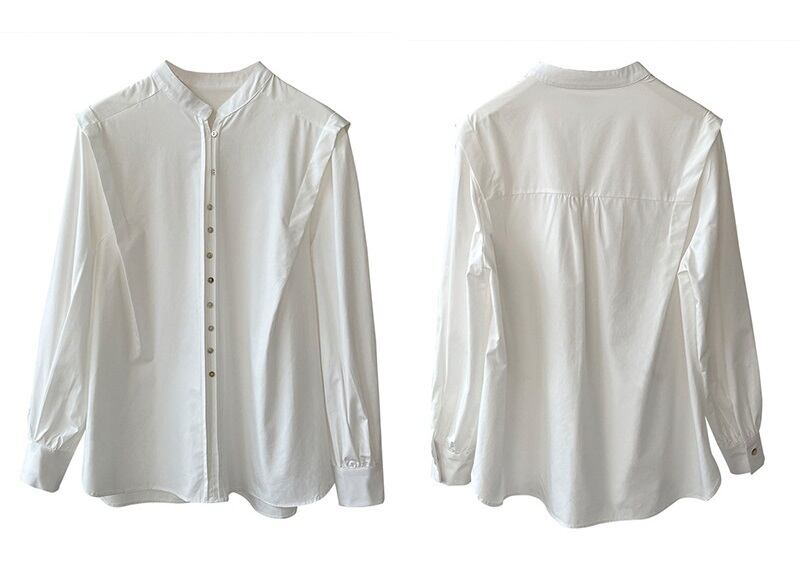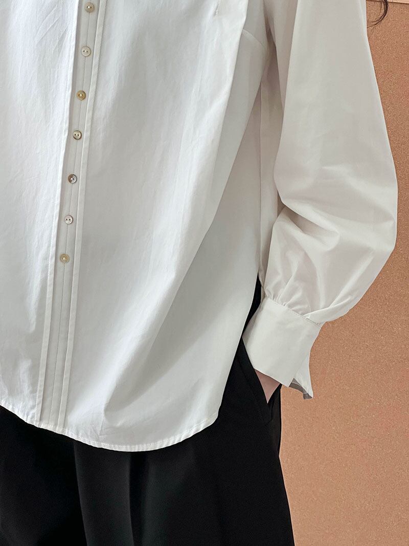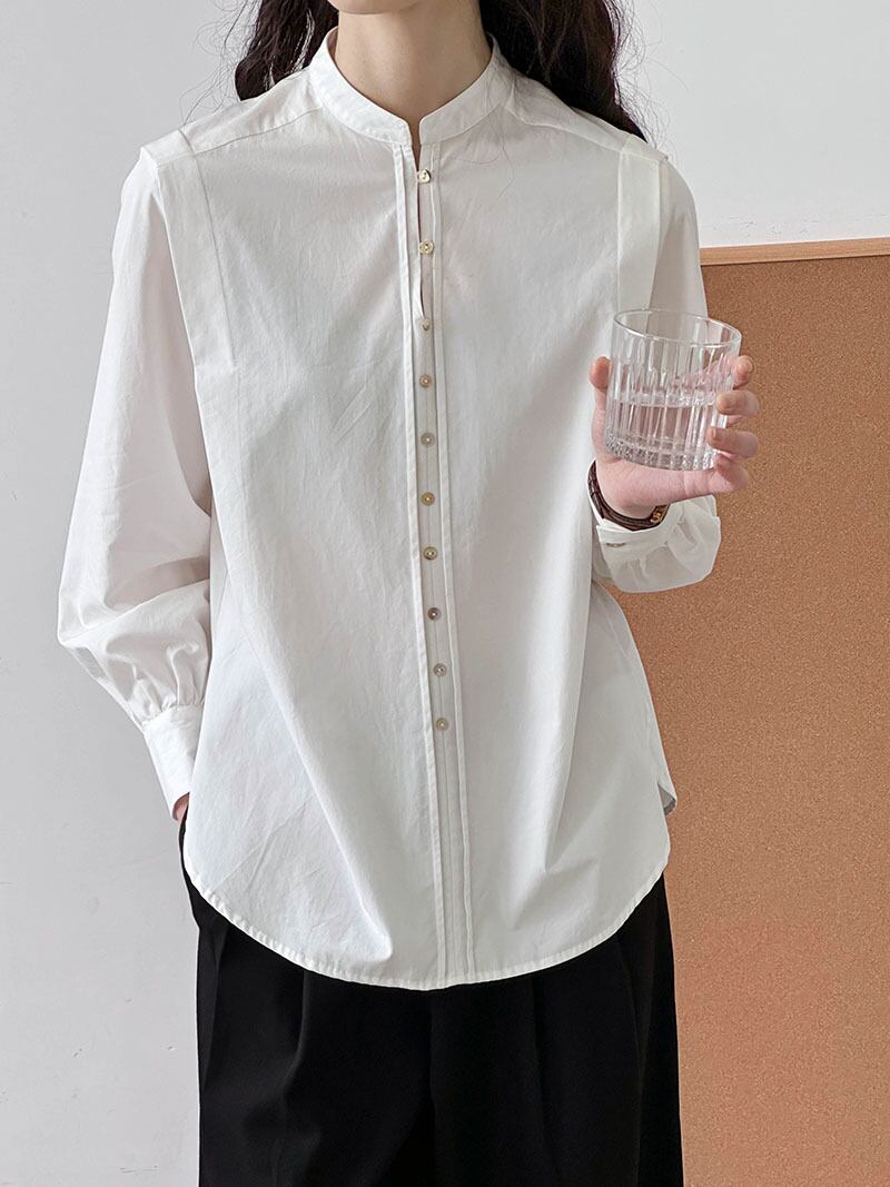 立ち襟 長袖 シャツ ブラウス レディース トップス 丈長 ミディアム 長袖 襟付き スタンドカラー ボタン かわいい 大人可愛い シンプル カジュアル 上品 おしゃれ かっこいい レトロ こなれ感 メンズライク マニッシュ 無地 春 秋 冬 ママ 通勤 学生 学校 通学 デート お出かけ 旅行 公園 女子会 休日 ショッピング カフェ 重ね着 体型カバー 普段使い 着回し レイヤード M L ゆったり 白 ホワイト