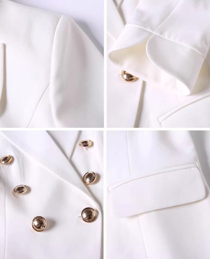 ビジネスシーンにぴったりのセットアイテムです。シンプルなデザインながらも、前開きのテーラードジャケットとストレートパンツは、洗練された印象を与え、上品さとクールさを兼ね備えています。オフィス、会議、プレゼンなど様々なシーンで大活躍!体型カバー効果もあり、女性らしい美脚を演出します。