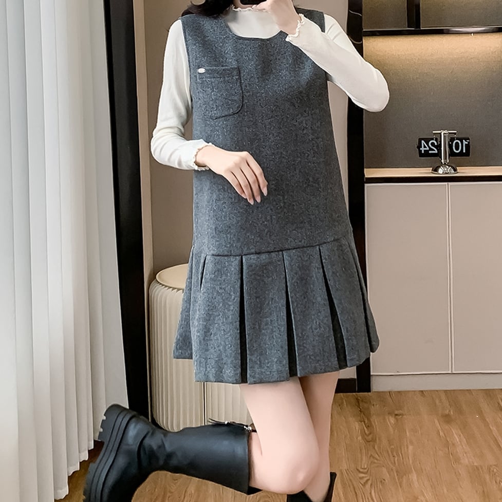 プリーツ切り替えデザインがクラシックで可愛いジャンパースカートです。エレガントな雰囲気を引き立てるドレスのような表情にシフト。大人の甘さを加算することで緊張感をゆるめるのに効果的。オシャレの完成度を高めるカギに