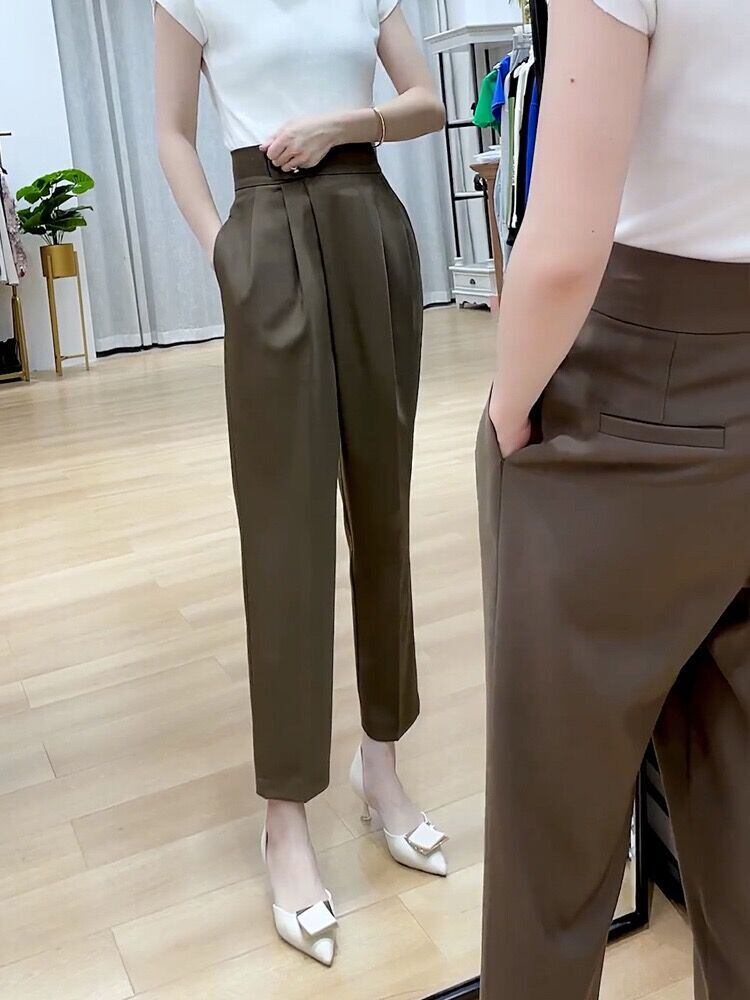 ハイウエストで脚長効果を演出し、タックプリーツが加わることで上品さをプラス。