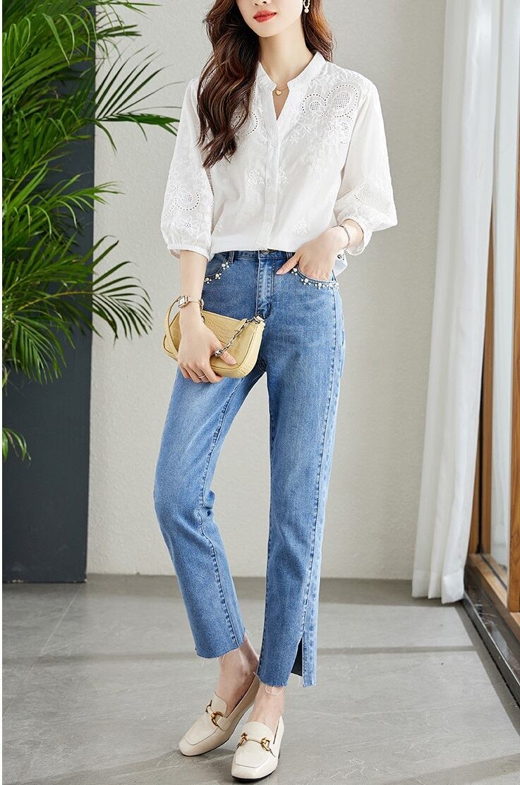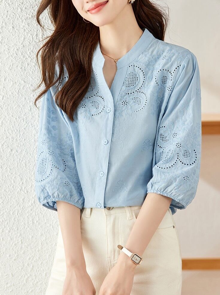 大人可愛い、花柄パンチングレースの立ち襟七分袖シャツ!ミディアム丈と透け感のあるレース素材が魅力で、春夏にぴったりの一枚です。スタンドカラーとかわいいデザインは、通勤やカジュアルなお出かけ、さらにはデートにも最適。清楚で上品な雰囲気を演出し、女子会やカフェでのおしゃれなスタイルにも大活躍します。