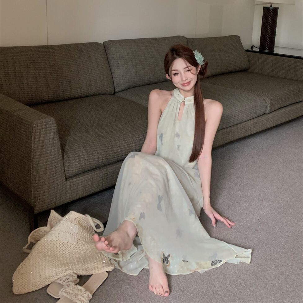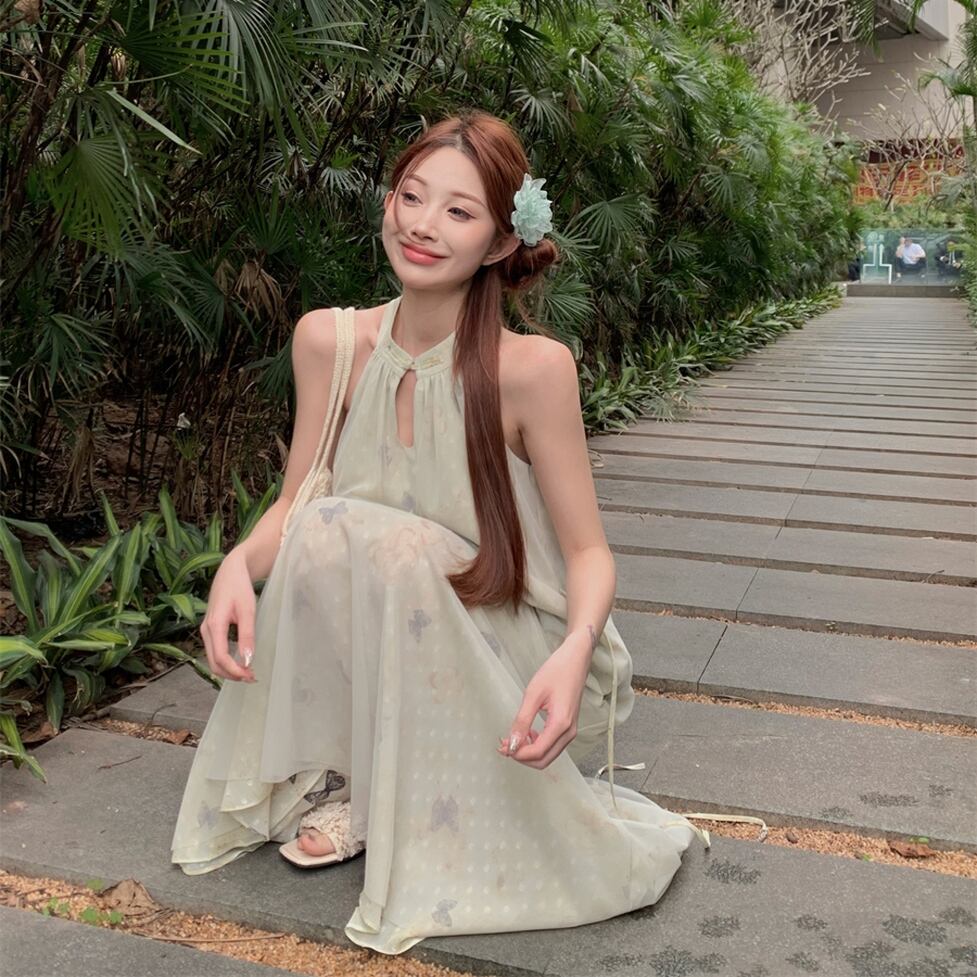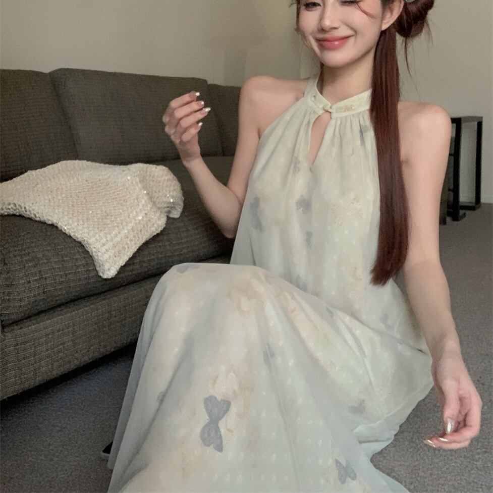 ロングシフォンワンピース シアーロングワンピース レディース ワンピース ドレス ワンピドレス ノースリーブワンピース 総柄ワンピース 蝶々 ドット ネックカット ロングワンピース マキシワンピース ロング ノースリーブ 袖なし クルーネック フレア シフォン かわいい 大人可愛い きれいめ シンプル カジュアル 上品 おしゃれ こなれ感 ガーリー クール エレガント デート お出かけ 休日 ショッピング 体型カバー トレンド インスタ映え ゆったり フェミニン