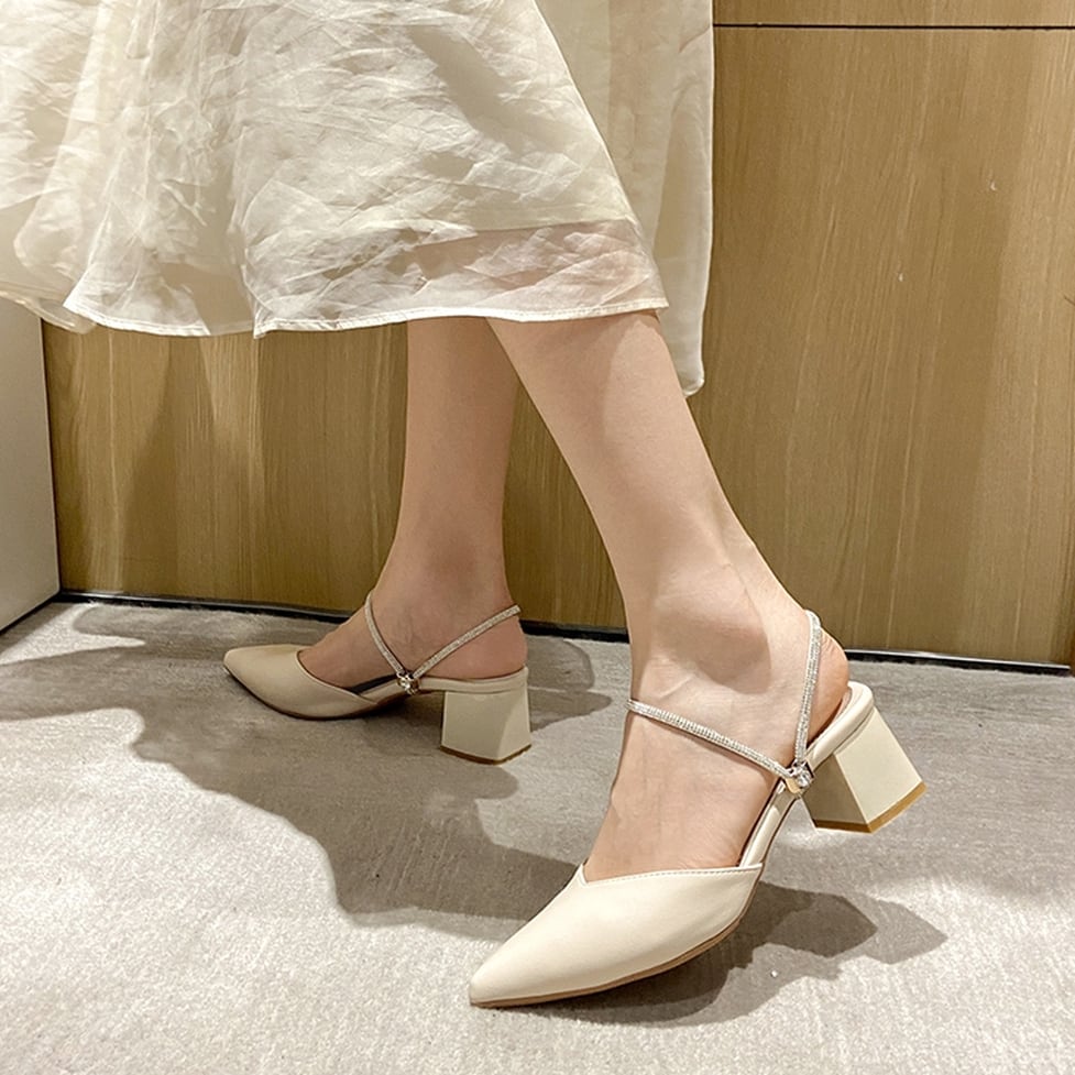 アッパーの美しいVラインに安定したヒールときらりと光るストラップがポイントの大人っぽいサンダル。構築的なシルエットはリアリティのある面持ちを発揮してそれとなく装いをドレッシーにカモフラージュ。シンプルでもオシャレに見えるスタイリングで甘く転ばせないバランサーとしても重宝