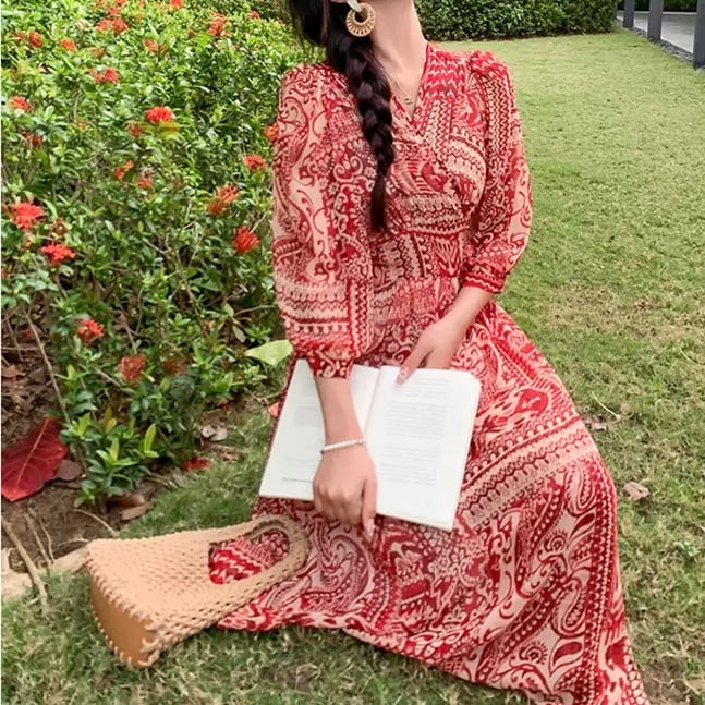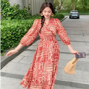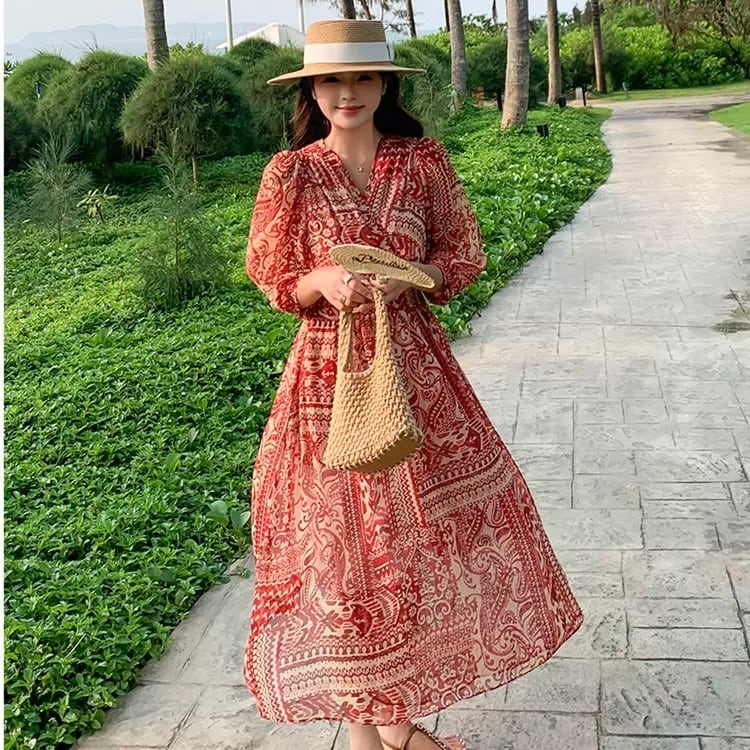 ワンピース 韓国風 オルチャン 2wa羽織り フレアワンピ ワンピ ロング丈 ロング ミモレ 柄ワンピース 袖あり 七部丈 Vネック ウエストマーク 大人可愛い きれい シンプル カジュアル 大人 かわいい リゾート ビーチ 上品 おしゃれ お洒落 かっこいい 大人女子 セクシー モダン 夏 S M L XL 2XL 3XL サイズ展開 春 夏 ロングシーズン デート お出かけ 女子会 華やか 韓国 韓国系 オルチャン ファッション スタイル 海 旅行 ひらひら ゆったり ゆるっと 大人カラー 涼しげ