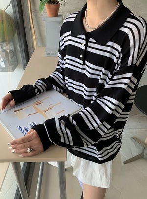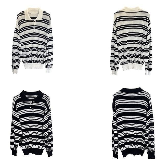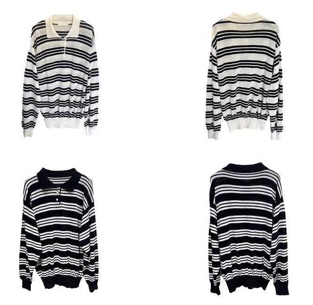 ボーダー柄 長袖 ポロシャツ レディース トップス プルオーバー 丈長 ミディアム 長袖 ドロップショルダー 襟付き ポロカラー ボタン バイカラー かわいい 大人可愛い シンプル カジュアル おしゃれ かっこいい こなれ感 マニッシュ ボーイッシュ ルーズ 個性的 存在感 ボーダー 春 秋 冬 ママ 通勤 学生 学校 通学 デート お出かけ 旅行 公園 女子会 休日 ショッピング カフェ 韓国 オルチャン 体型カバー 普段使い 着回し ゆったり フリーサイズ 黒白 黒グレー