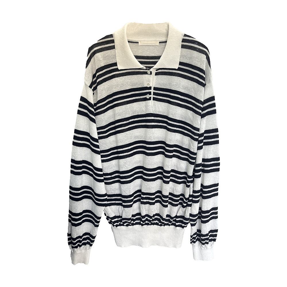 春秋冬に大活躍のボーダー柄長袖ポロシャツが登場!ドロップショルダーのデザインとミディアム丈が絶妙なバランスを生み出し、ゆったりとしたフィット感で着やすさ抜群。シンプルながら存在感のあるバイカラー仕様で、カジュアルシーンからデート、お出かけ、女子会まで幅広くご活用いただけます!