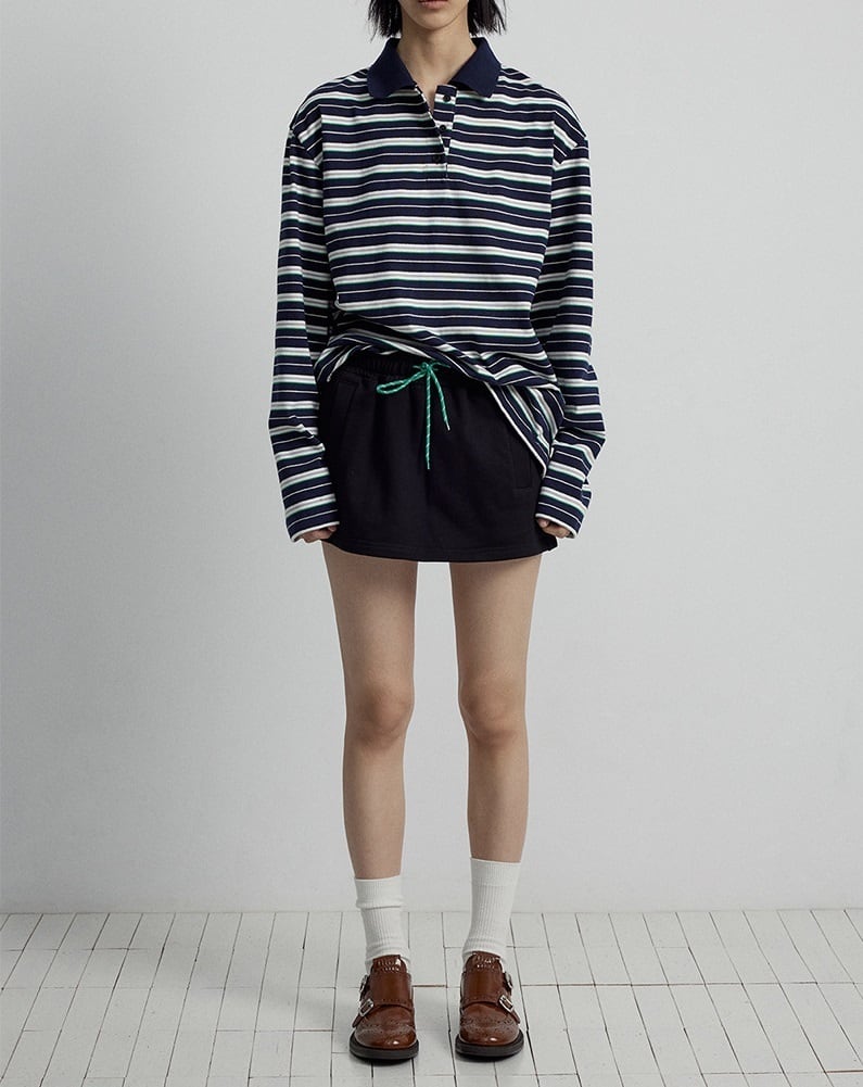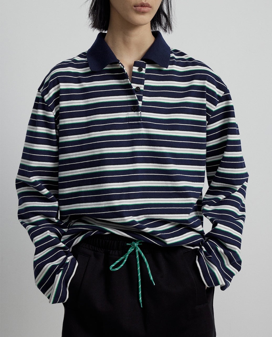 シンプルながらもおしゃれなボーダー柄が特徴のルーズ長袖ポロシャツは、春秋冬とロングシーズン活躍する優れもの!ドロップショルダーとミディアム丈で、体型カバーもばっちり。カジュアルなデザインは、デートや女子会、通勤・通学など様々なシーンにぴったり。さらには、重ね着のレイヤードスタイルにも大活躍間違いなし!