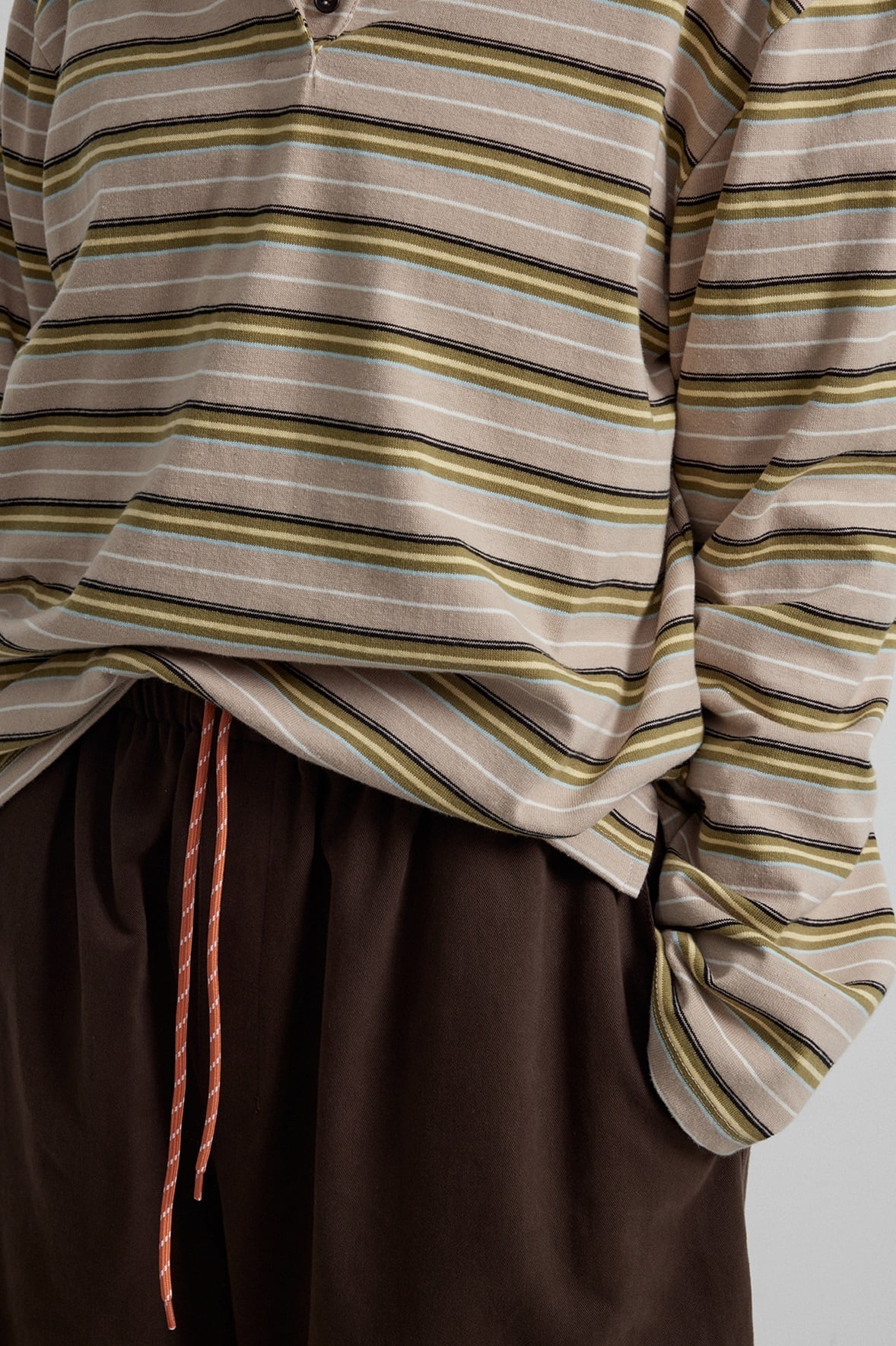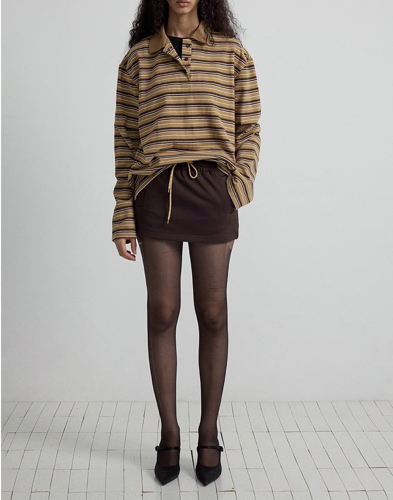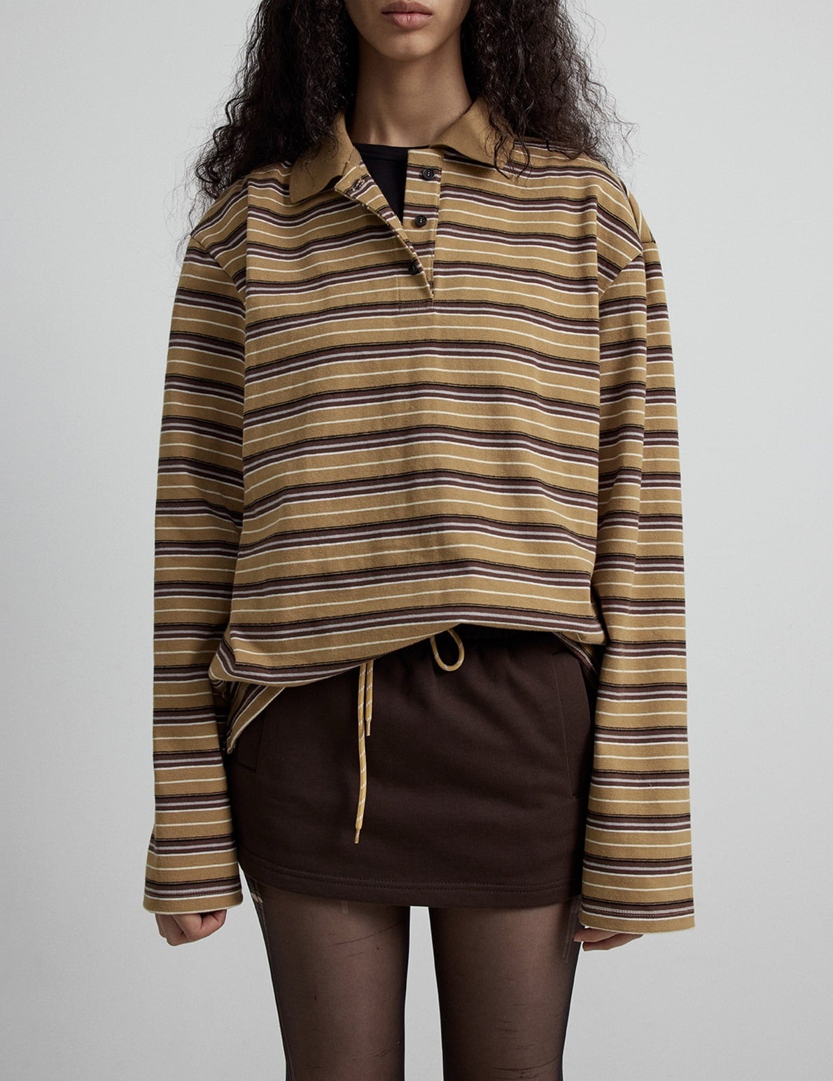 ボーダー柄 ルーズ 長袖 ポロシャツ レディース トップス プルオーバー 丈長 ミディアム 長袖 ドロップショルダー 襟付き 角襟 ポロカラー かわいい 大人可愛い カジュアル おしゃれ かっこいい こなれ感 メンズライク マニッシュ ボーイッシュ ルーズ クール ボーダー 春 秋 冬 ママ 通勤 学生 学校 通学 デート お出かけ 旅行 公園 女子会 休日 ショッピング カフェ 重ね着 体型カバー 普段使い 着回し レイヤード ゆったり フリーサイズ 茶色 ブラウン カーキ ネイビー