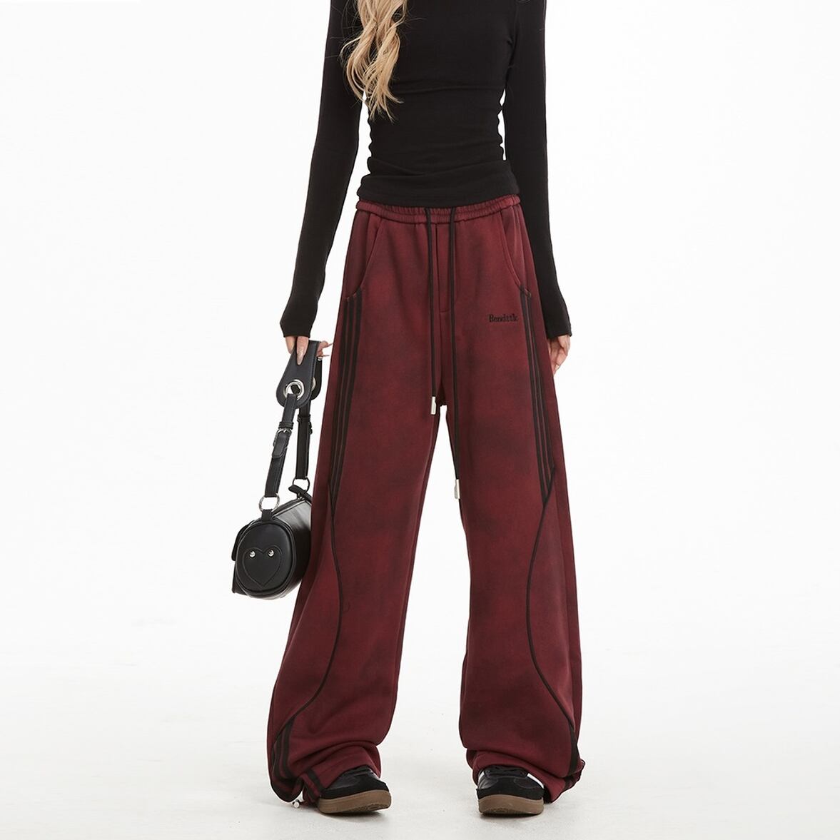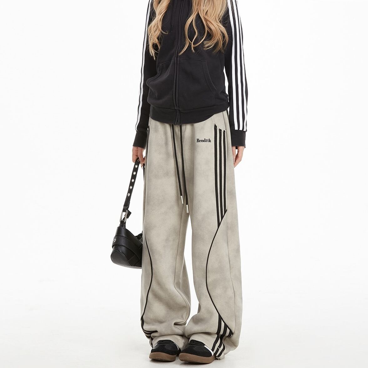 3本ラインと曲線がミックスしたおしゃれなスポーティパンツ。余白のあるワークディティールとゆれ感のある幅広ラインを気負いなくキレイに見えるデザイン性。縦のシルエットを強調し美しく見せる落ち感などスタイルUP効果を助長する大人顔に引き上げる