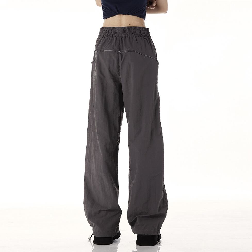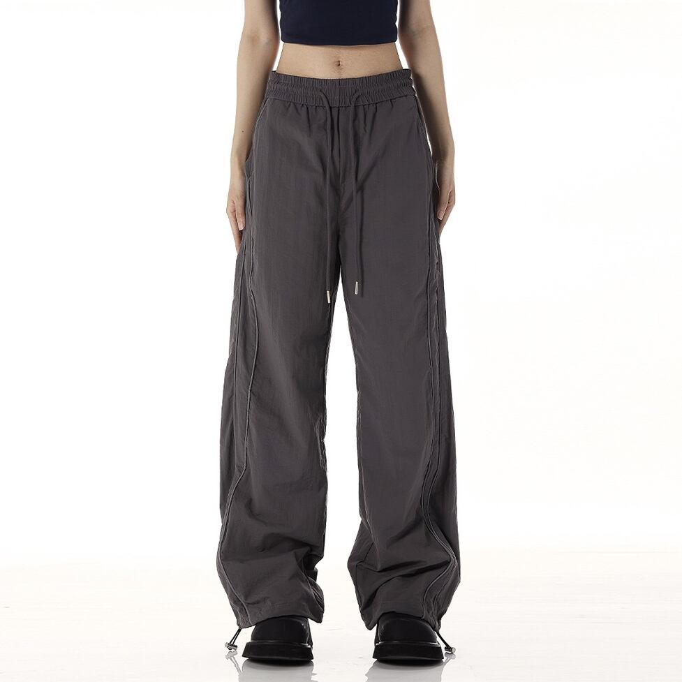 スポーティ&ストリートでシンプルな雰囲気のワイドレッグパンツ。1枚で絵になったり着方のパターンを自在に増やせたりできるウィットに富んだデザインがポイント。女性らしく流れるようなシルエットながら立体的なルックスが誕生