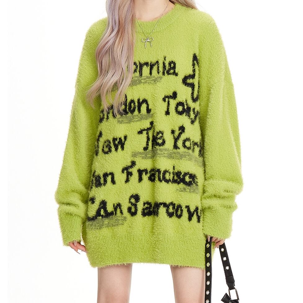オーバーニットプルオーバー ロゴニットプルオーバー レディース トップス ボトムス ニット パンツ 長袖 ロゴ クルーネック ドロップショルダー ビッグシルエット オーバーサイズ ワイド ストリート フェミニン かわいい 大人可愛い きれいめ カジュアル おしゃれ かっこいい こなれ感 ラフ マニッシュ ガーリー 個性的 エレガント キュート 通勤 通学 デート お出かけ 休日 ショッピング 楽ちん 体型カバー 普段使い トレンド インスタ映え ゆったり