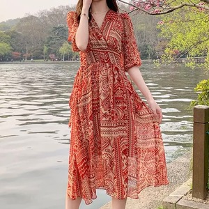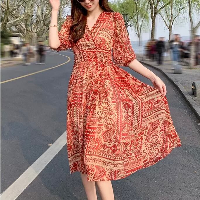 ワンピース 韓国風 オルチャン ボヘミアン フレアワンピ ワンピ ロング丈 ロング ミモレ ボヘミアワンピース 袖あり 五分丈 Vネック ウエストマーク 大人可愛い きれい シンプル カジュアル 大人 かわいい リゾート ビーチ 上品 おしゃれ お洒落 かっこいい 大人女子 セクシー モダン 夏 S M L XL 2XL 3XL サイズ展開 春 夏 ロングシーズン デート お出かけ 女子会 華やか 韓国 韓国系 オルチャン ファッション スタイル 海 旅行 ひらひら ゆったり ゆるっと 大人カラー