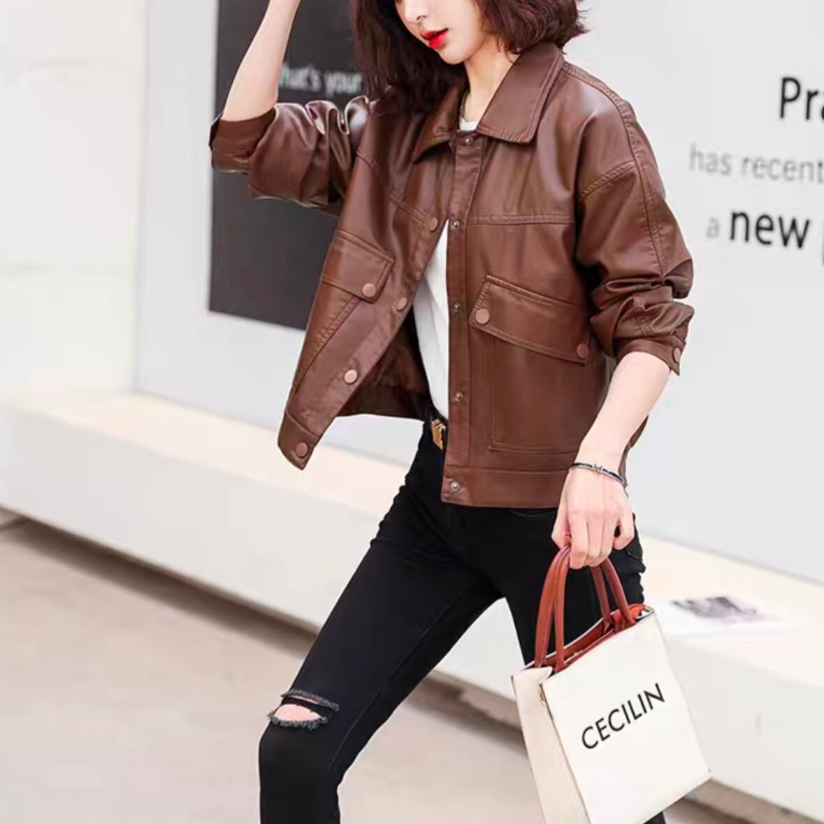 ジャケット 韓国風 オルチャン ポケット レザー風ジャケット ミドル丈 アウター ボタン 春コート 秋コート スプリングコート コート ミディアム 前開き 薄着 大人可愛い きれいめ シンプル カジュアル 大人 大人カジュアル 上品 おしゃれ お洒落 クール かっこいい 大人女子 こなれ感 モダン レトロ 春 秋 ロングシーズン デート お出かけ 女子会 休日 着回し 普段使い 韓国系 体系カバー トレンド M L XL 2XL サイズ展開 大きいサイズ スリム 細身 大人カラー ブラック ブラウン