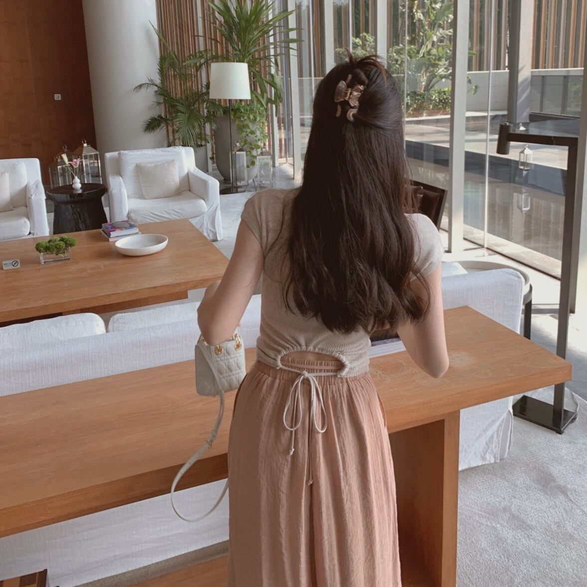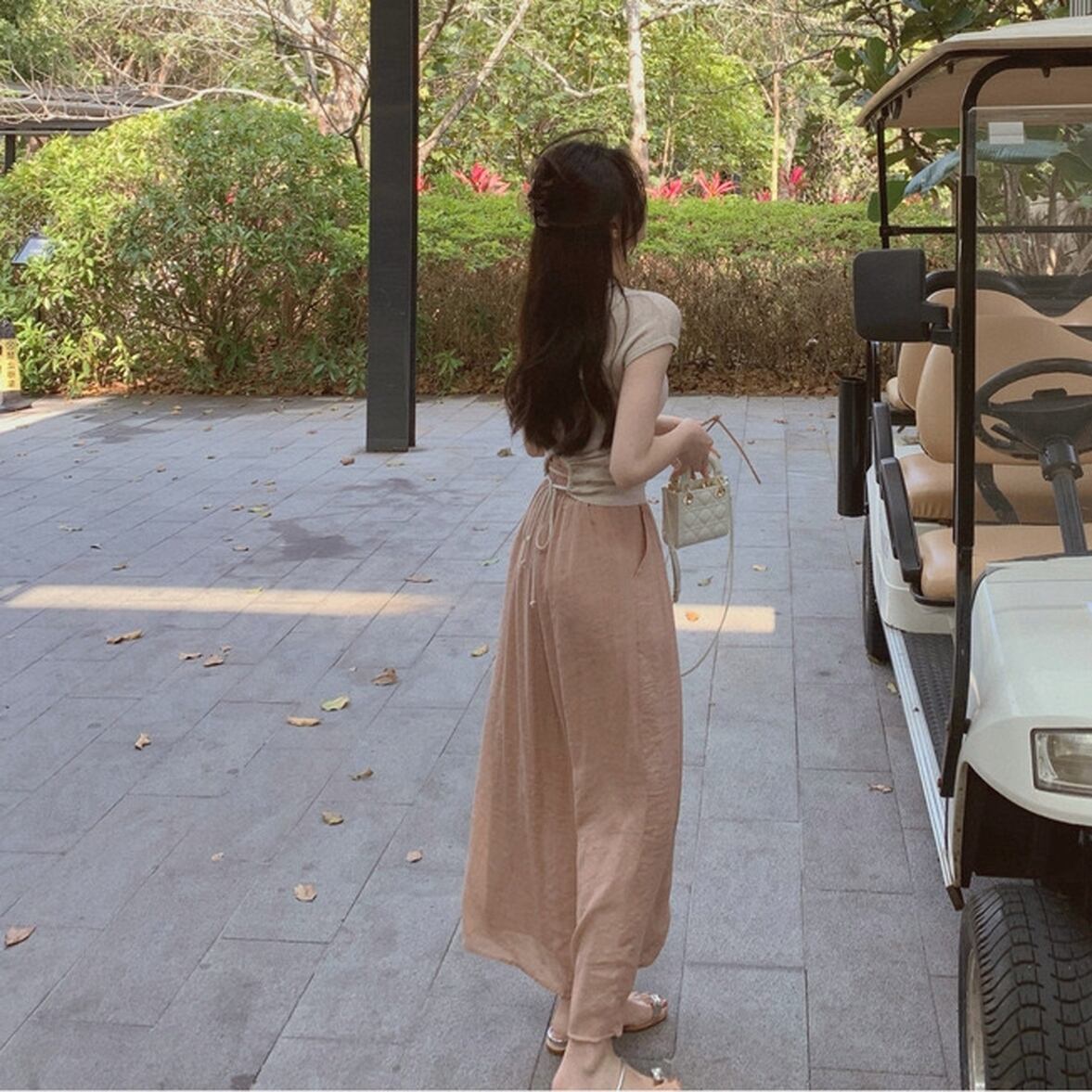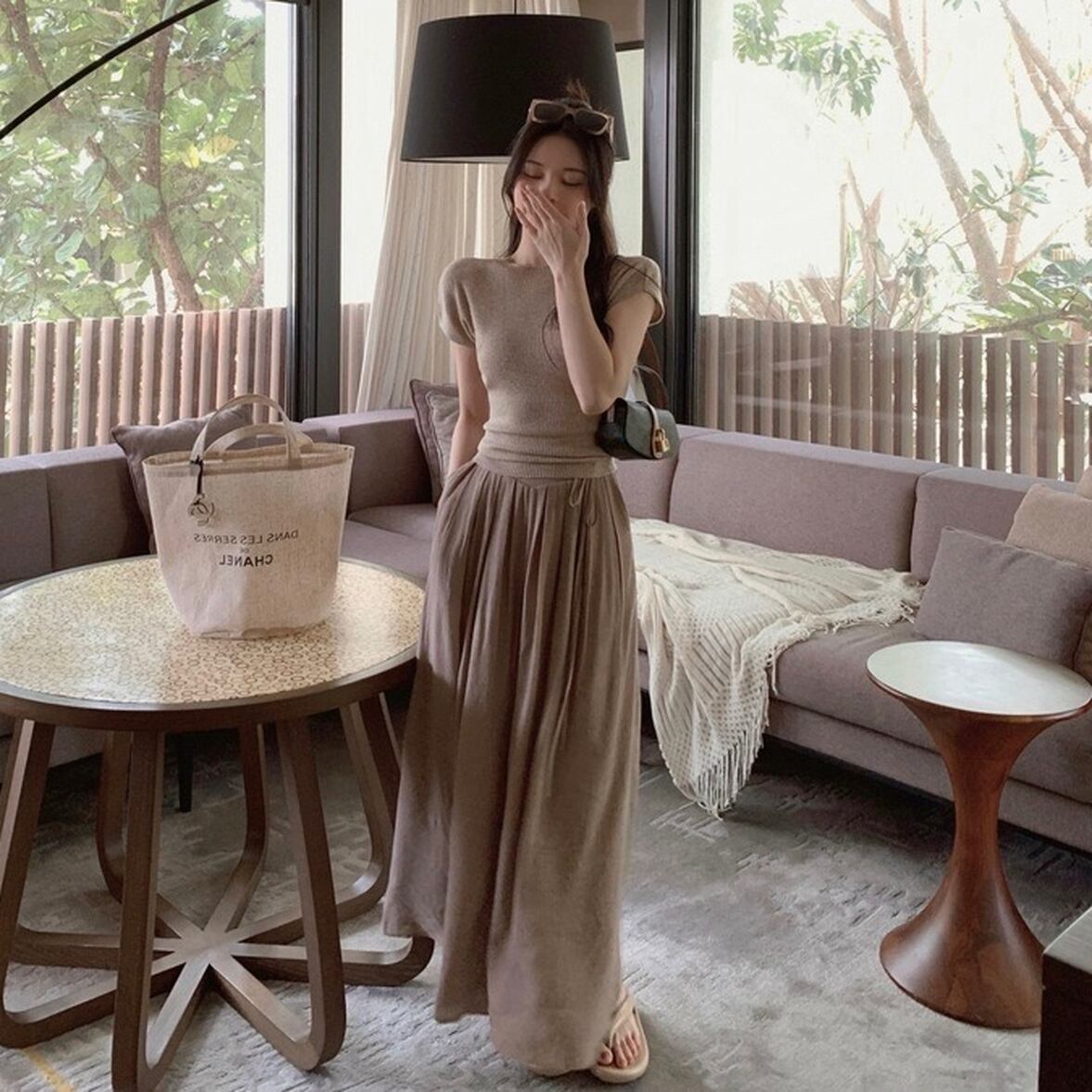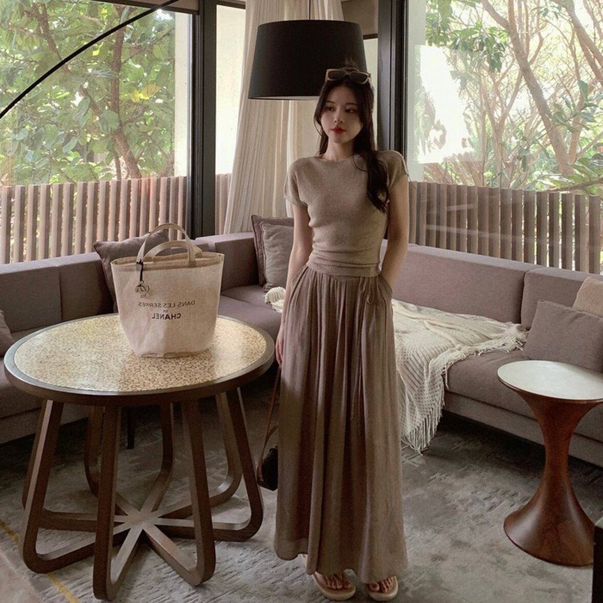 リブトップス+フレアパンツセット レディース 2セット ツーピース 上下セット ハイネック 半袖 リブニット ウエストゴム フレアパンツ ワイドパンツ 異素材 アースカラー オーバーサイズ かわいい 大人可愛い きれいめ カジュアル おしゃれ かっこいい こなれ感 マニッシュ ガーリー 個性的 エレガント キュート 通勤 通学 デート お出かけ イベント 休日 ショッピング 楽ちん 体型カバー 普段使い トレンド インスタ映え ゆったり フェミニン