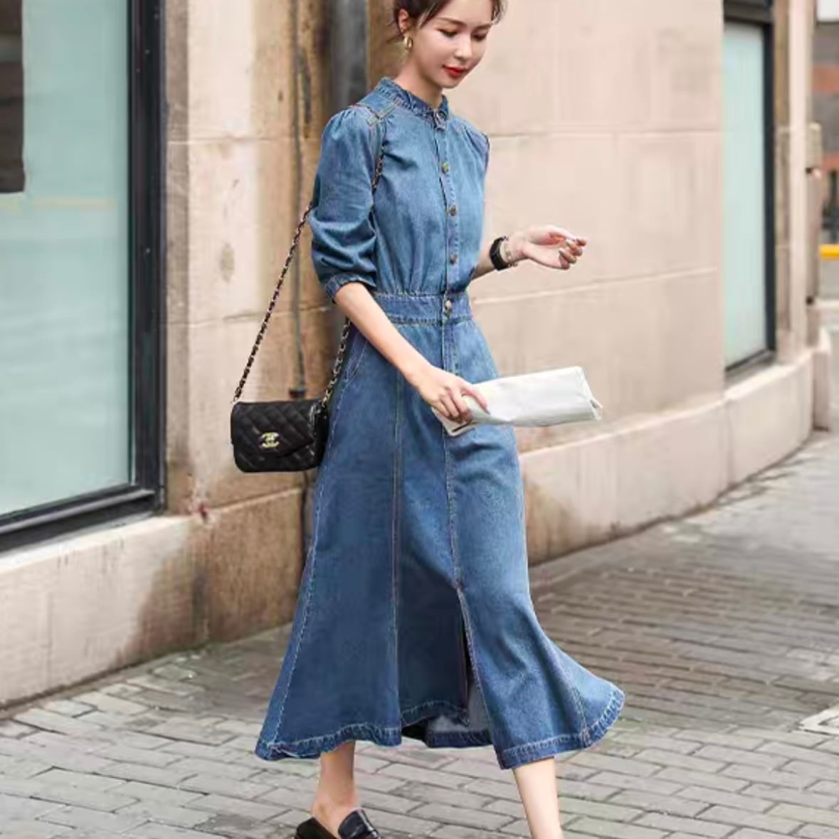 ワンピース 韓国風 オルチャン デニム フレアワンピ ワンピ ロング丈 シャツワンピ 袖あり 長袖 ボタン ラウンドネック ウエストマーク 大人可愛い きれい シンプル カジュアル 大人 大人カジュアル かわいい リゾート レトロ 上品 おしゃれ お洒落 かっこいい 大人女子 セクシー モダン 春 夏 M L XL 2XL サイズ展開 春 夏 ロングシーズン デート お出かけ 女子会 華やか 韓国 韓国系 オルチャン ファッション スタイル 海 旅行 ゆったり ゆるっと 大人カラー 涼しげ 大人カラー