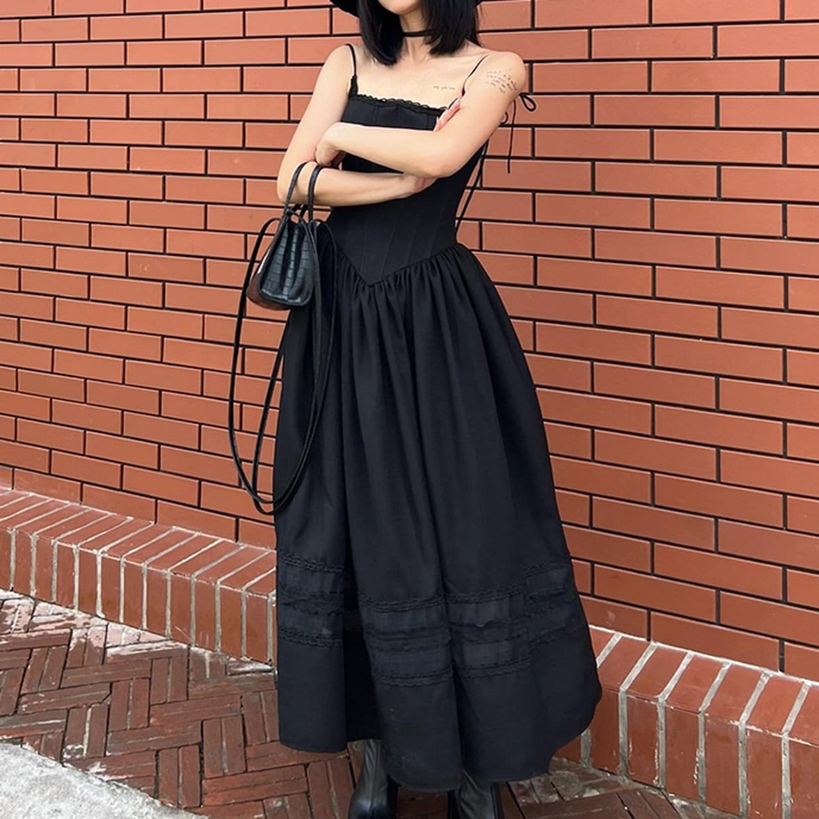 モードでシックな雰囲気にさりげないレース使いが可愛いキャミソールワンピース。上品な印象に仕上がるので大人っぽさをねらえて気楽に楽しめます。合わせやすくオシャレの引き出しが多いアイテム