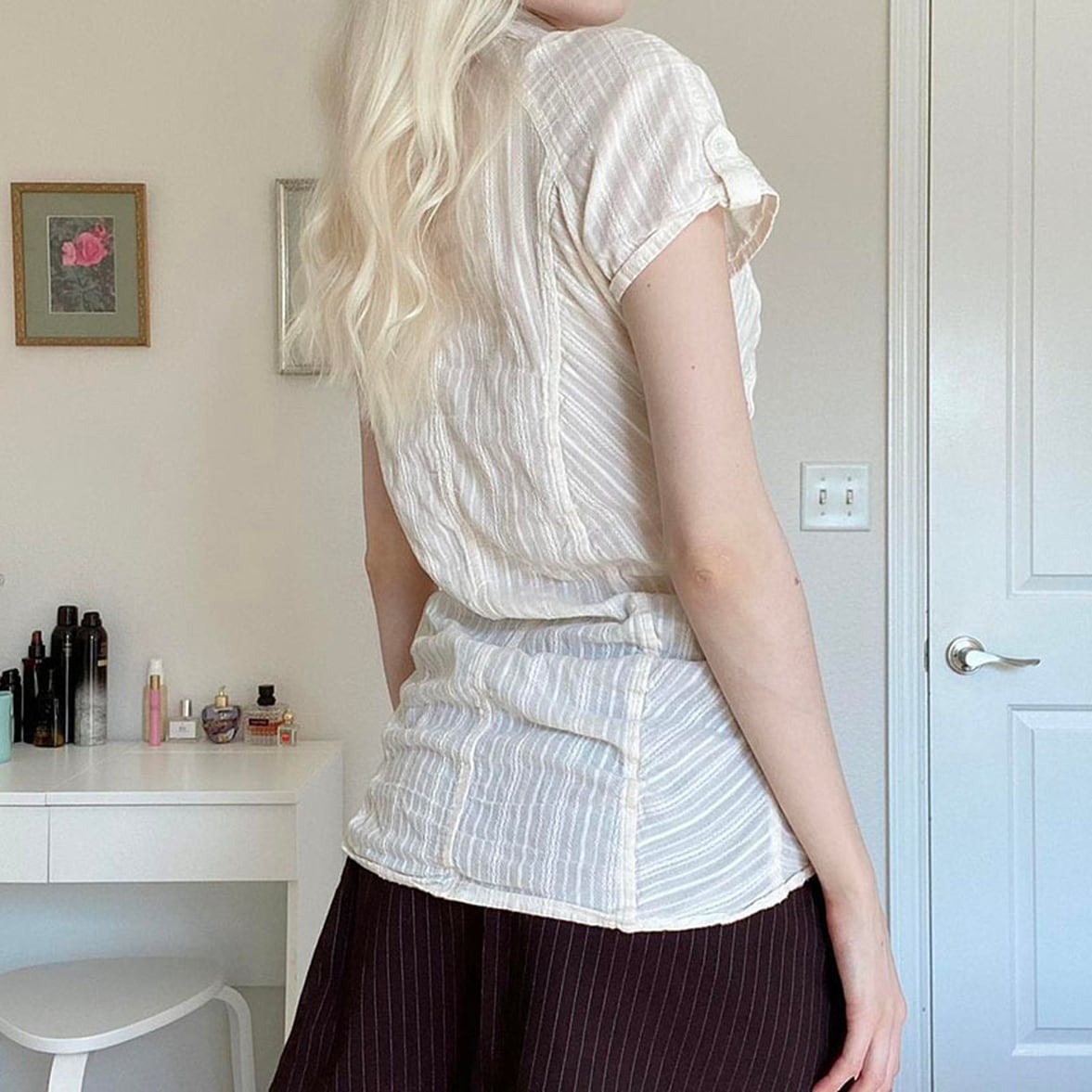 半袖シャツ 襟付きシャツ レディース トップス シャツ ブラウス 半袖 襟付き オープンカラー 透け感 光沢 ストライプ シアーシャツ スリム スマート 切り替え かわいい 大人可愛い きれいめ シンプル カジュアル 上品 おしゃれ かっこいい こなれ感 マニッシュ ガーリー キュート 通勤 通学 デート お出かけ 休日 ショッピング 楽ちん 体型カバー 普段使い モテ トレンド インスタ映え ゆったり フェミニン
