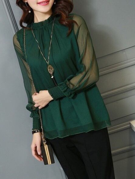 シースルー 長袖 ブラウス レディース トップス プルオーバー ミディアム 長袖 襟付き スタンドカラー スリム 細身 透け感 シアー かわいい 大人可愛い きれいめ シンプル 上品 おしゃれ エレガント 無地 春 秋 会議 ミーティング ママ オフィス OL 通勤 学生 学校 通学 デート お出かけ 旅行 公園 女子会 休日 ショッピング カフェ 普段使い 着回し M L XL 2XL 白 ホワイト 黒 ブラック ワインレッド ネイビー アーミーグリーン