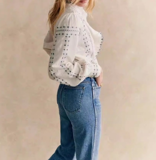 ドット柄 フリル 長袖 シャツ ブラウス レディース トップス ミディアム 長袖 襟付き スタンドカラー フェミニン 前開き 綿 ボタン かわいい 大人可愛い シンプル カジュアル 上品 おしゃれ レトロ こなれ感 個性的 存在感 ドット柄 水玉 春 秋 冬 ママ 通勤 学生 学校 通学 デート お出かけ 旅行 公園 女子会 休日 ショッピング カフェ 普段使い 着回し S M L ドット柄