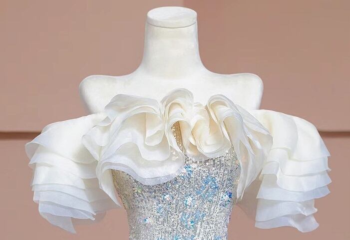 華やかでエレガントなスパンコールフリルマーメイドドレス。舞台や発表会、特別なイベントには欠かせない、主役級の存在感を放ちます。オフショルデザインで肩やデコルテを美しく演出し、女性らしい魅力を引き立てます。スリムなシルエットはスタイルアップ効果も期待でき、フリル切り替えが動きに合わせて優雅に揺れます。春から秋まで幅広く活躍し、あらゆるシーズンのパーティーシーンを彩ります。