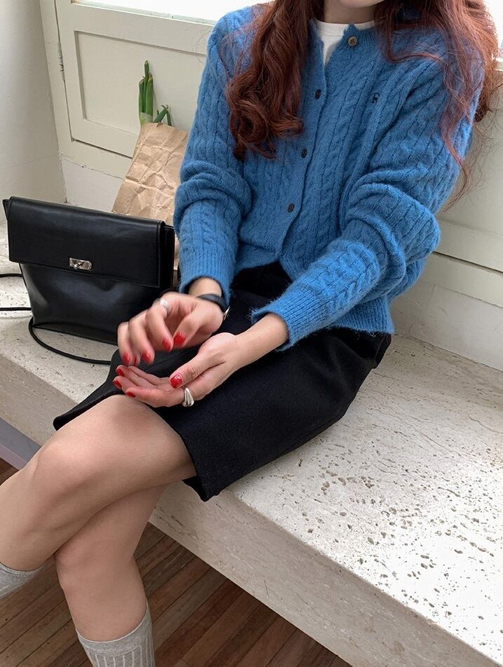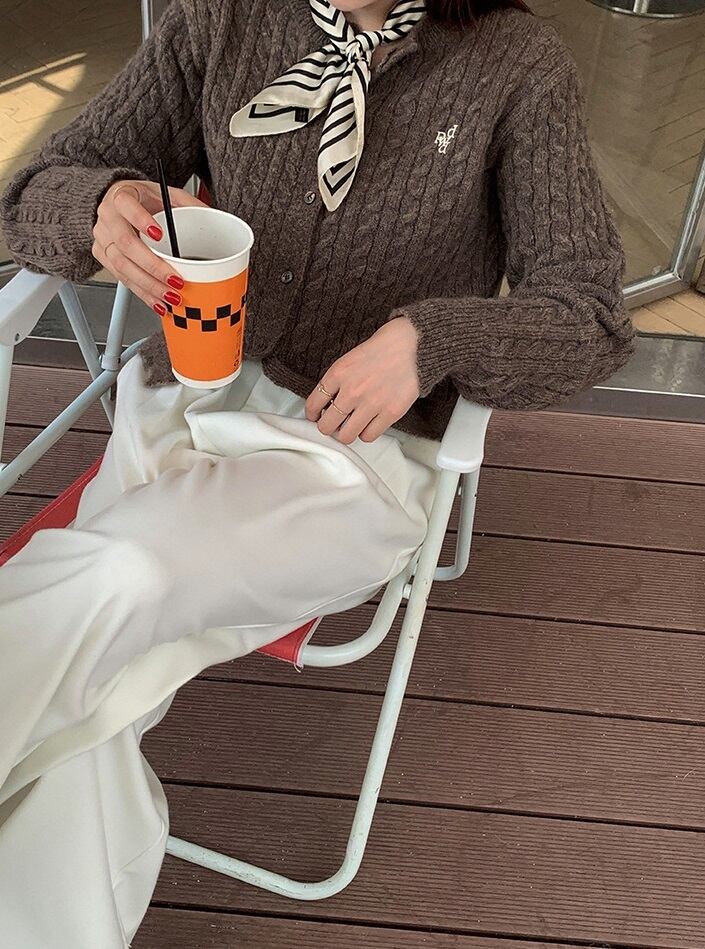 心地よさとおしゃれを両立させた、ラウンドネックケーブル編みニットカーディガン。シンプルなデザインながら、ふっくらとしたケーブル編みが特徴で、さりげない可愛らしさを引き立てます!フリーサイズで、ゆったりとしたシルエットがどなたでもリラックスして着用でき、春、秋、冬の3シーズンを通して着回しが効く便利な一着です。襟なしの柔らかな雰囲気が、カジュアルなコーディネートからきれいめスタイルまで幅広く合わせやすく、デートやお出かけ、旅行といったシーンにもぴったりです。前開きで重ね着もしやすく、大人可愛い印象を与えます。