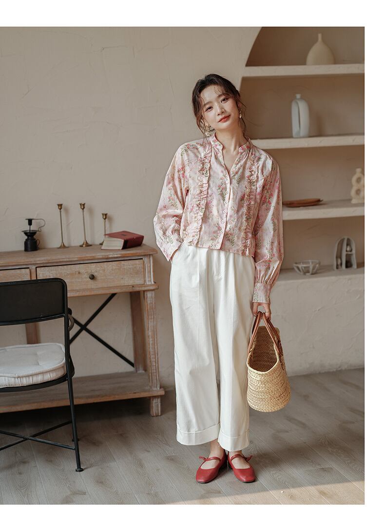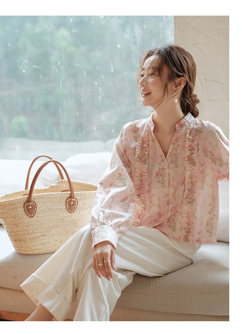 レディース トップス シャツ ブラウス 前開き ショート 長袖 ラグラン スタンドカラー フェミニン フリル ボタン ギャザー かわいい 大人可愛い きれいめ シンプル カジュアル 上品 おしゃれ かっこいい こなれ感 ガーリー エレガント 存在感 抜け感 ラブリー キュート ベーシック ナチュラル 花柄 フラワー 春 秋 通勤 学生 学校 通学 デート お出かけ お泊まり 公園 女子会 休日 高原 ガーデン ショッピング お花見 カフェ 普段使い 着回し モテ 清楚 定番 ゆったり フリーサイズ ピンク
