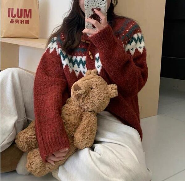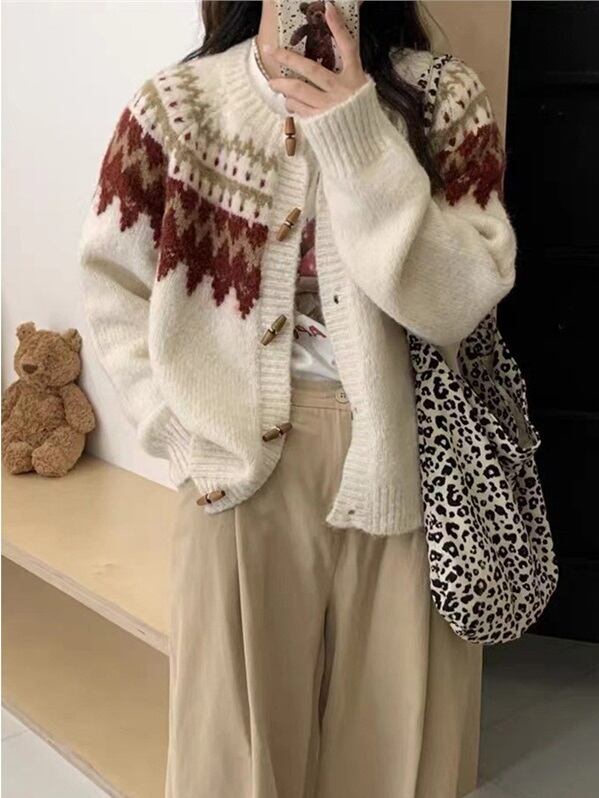 ノルディック柄 ダッフル ニットカーディガン レディース トップス ニット カーディガン 羽織 丈長 ミディアム 長袖 ラウンドネック 襟なし ボタン トグルボタン かわいい 大人可愛い シンプル カジュアル おしゃれ レトロ こなれ感 ルーズ 個性的 主役級 存在感 ノルディック 春 秋 冬 ママ 通勤 学生 学校 通学 デート お出かけ 旅行 公園 女子会 休日 ショッピング カフェ 重ね着 暖かい 防寒 体型カバー 普段使い 着回し レイヤード ゆったり フリーサイズ オフホワイト レッド