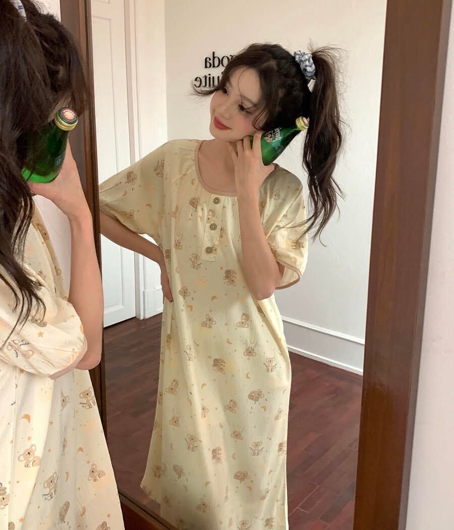可愛らしいクマ柄が特徴のセットアップルームウェアです。