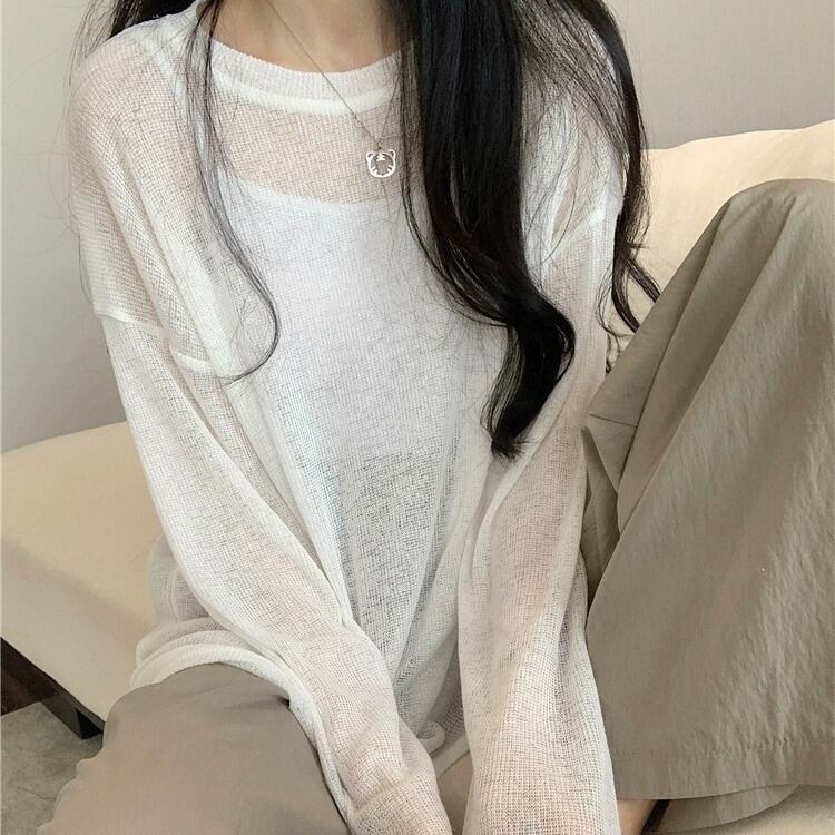 シースルー 長袖 ルーズ ニットセーター レディース トップス ニット セーター プルオーバー インナー 丈長 ミディアム ドロップショルダー ラウンドネック 襟なし 透け感 かわいい 大人可愛い シンプル カジュアル おしゃれ こなれ感 抜け感 無地 春 秋 ママ 通勤 学生 学校 通学 デート お出かけ 旅行 公園 女子会 休日 ショッピング カフェ 重ね着 韓国 オルチャン 体型カバー 普段使い 着回し レイヤード M L XL ゆったり ゆる 白 ホワイト グレー 緑 グリーン オートミール