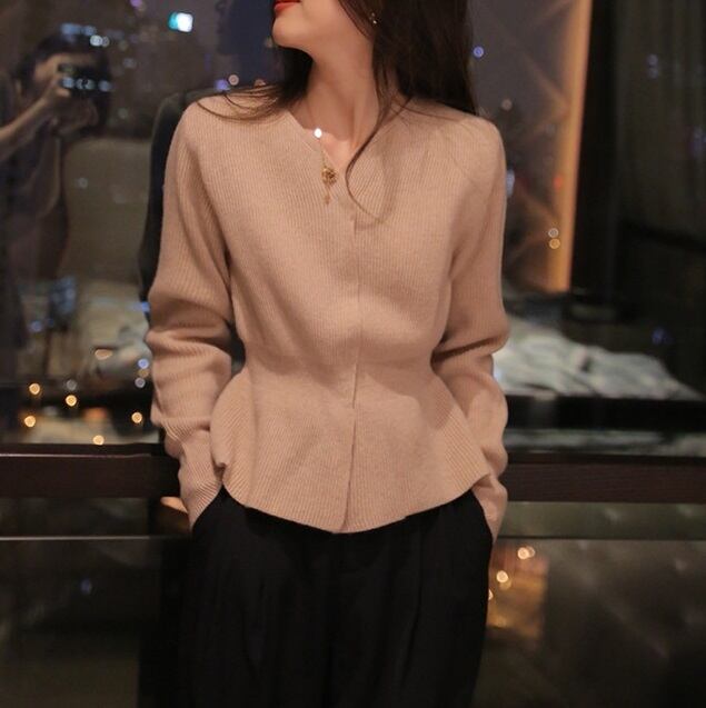 春・秋・冬に大活躍の、ウエスト絞りペプラムVネックリブニットカーディガンです!リブ編みが程よいフィット感を実現し、スリムなシルエットが美しいラインを演出します。シンプルでありながら、エレガントな印象を与えるデザインは、オフィスやデート、休日のお出かけにもぴったり。襟なしのデザインは、重ね着を楽しむ際にも便利で、多彩な動きに対応します!