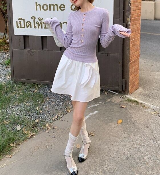 このセーターはシンプルながらも個性的なカットアウトデザインが特徴で、存在感抜群!フレアスリーブとラウンドネックが、女性らしさを引き立ててくれます。普段使いや休日のお出かけにぴったりの一着です!
