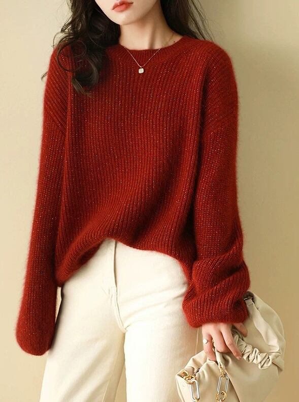 おしゃれで暖かい!ラメ入りラウンドネックニットセーター!