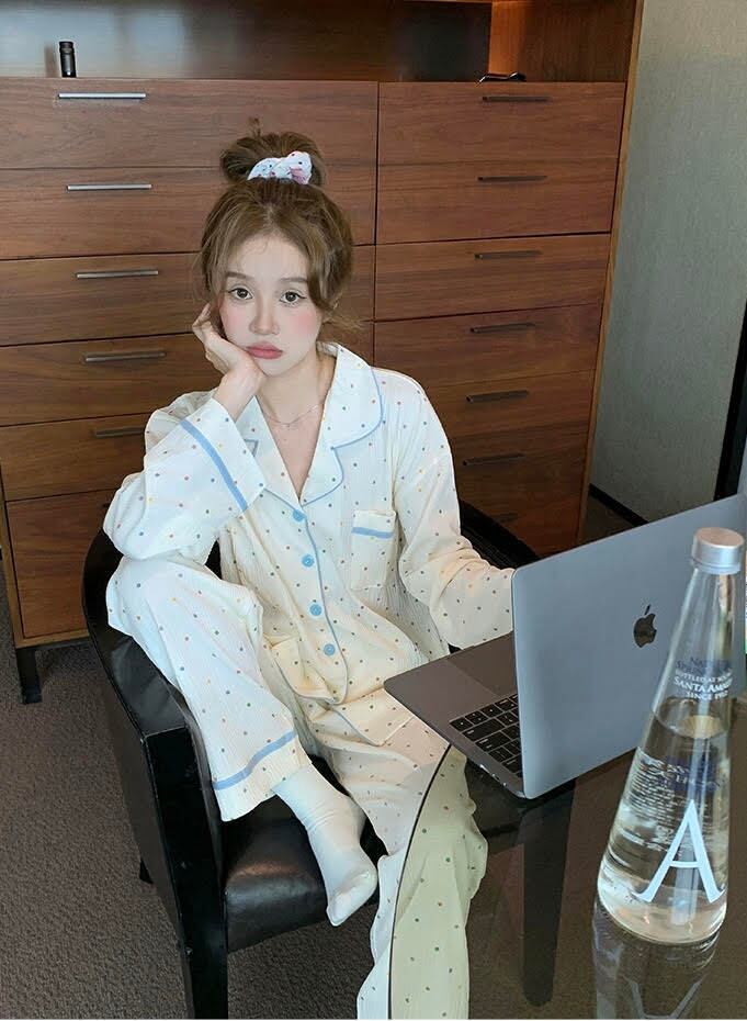かわいいドット柄が特徴的なルームウェアです。