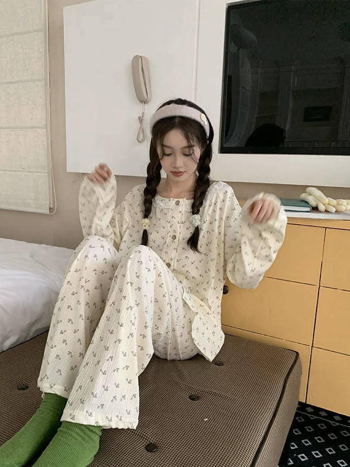 セットアップ レディース ルームウェア パジャマ 部屋着 寝巻き 長袖 襟付き レース 前開き ボタン オーバーサイズ かわいい 大人可愛い 可愛い 大人女子 大人 きれいめ シンプル カジュアル おしゃれ お洒落 ラフ ガーリー ルーズ とろみ感 抜け感 ラブリー キュート 存在感 主客級 学生風 ナチュラル 花柄 春 秋 お泊まり アウトドア キャンプ 旅行 休日 双子 韓国 オルチャン コーデ トレンド 流行 楽ちん 普段使い デイリー M L XL 2XL ルーズ ゆったり ライトベージュ